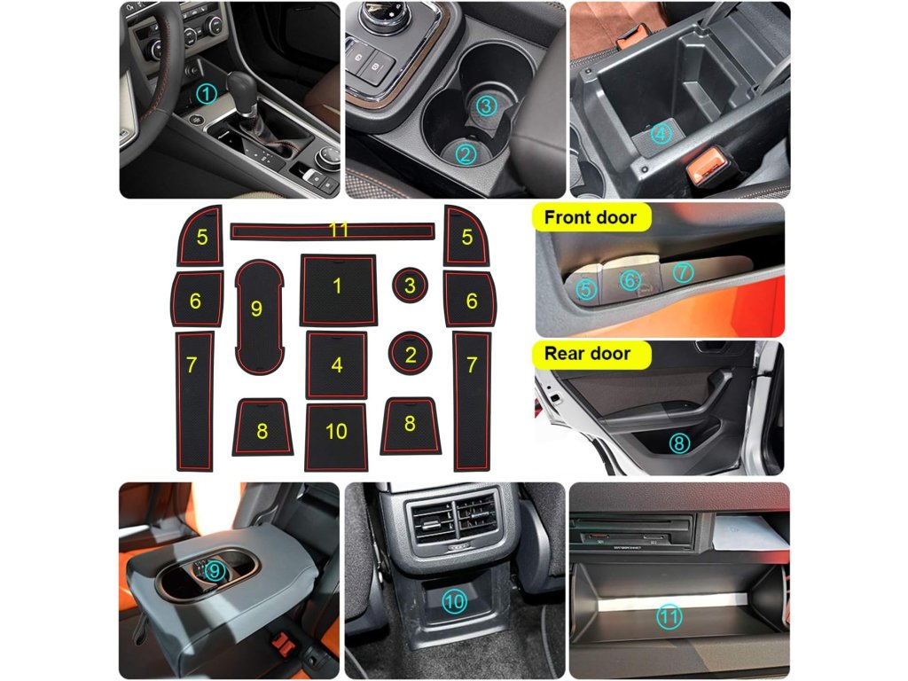 11ks Ochranná protiskluzová rohožka pro Seat Ateca / Cupra 2017-2023, červený