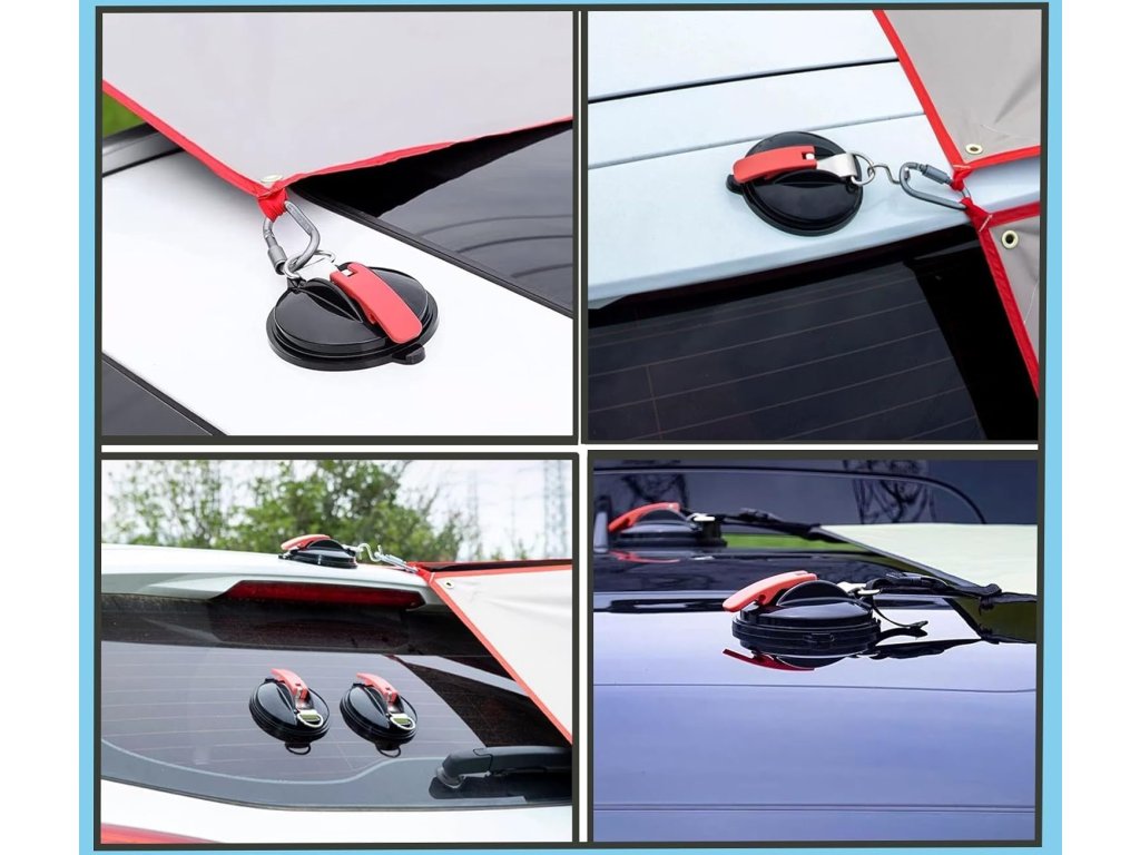 Lze je upevnit na všechny hladké povrchy. Přísavky bezpečně sedí na karoserii auta a vydrží i silný vítr, přitom háčky nezanechávají na laku žádné škrábance.