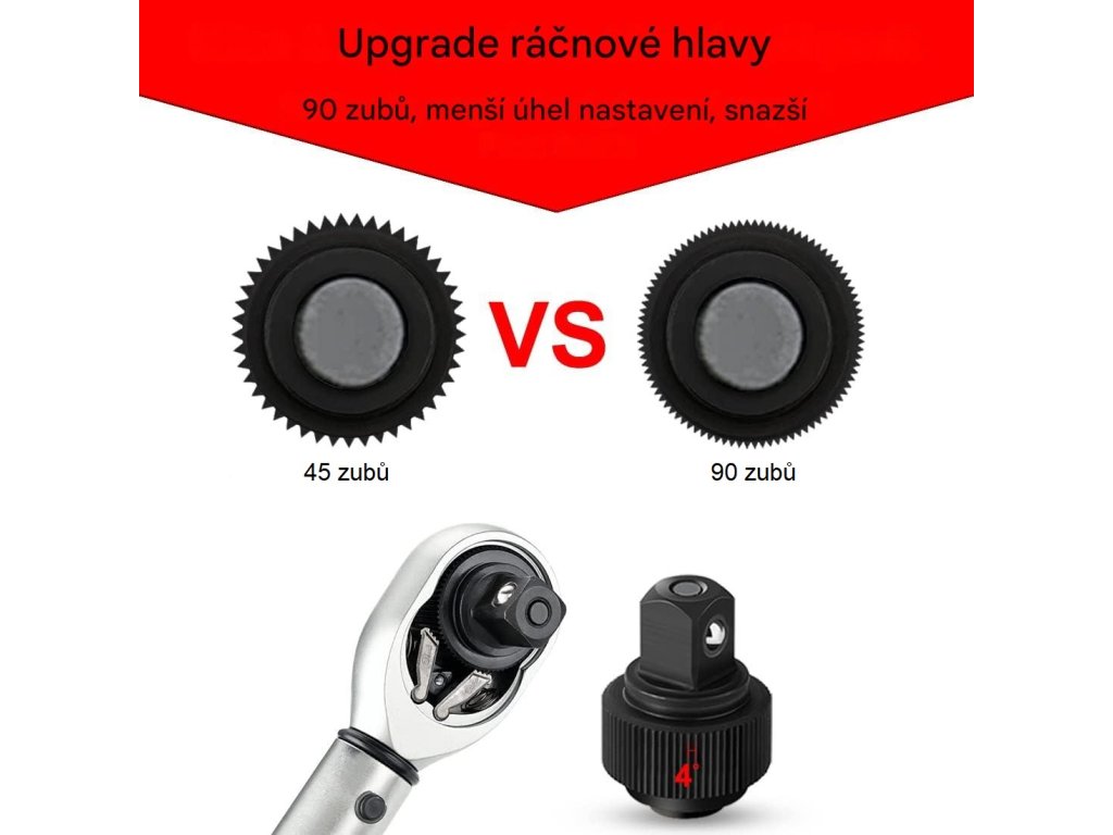90zubý ráčnový momentový klíč 1/2", 20-220 Nm, přesnost ±4%