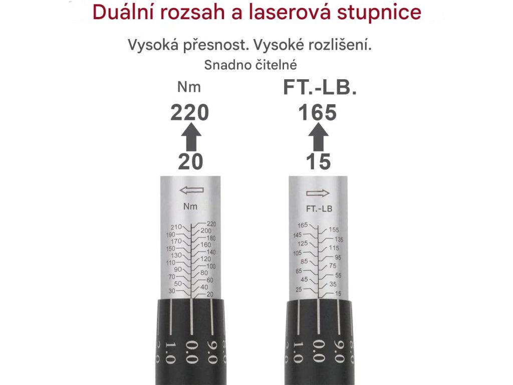 Vylepšená verze momentového klíče má přehlednou stupnici. Nastavení momentu je velmi jednoduché.