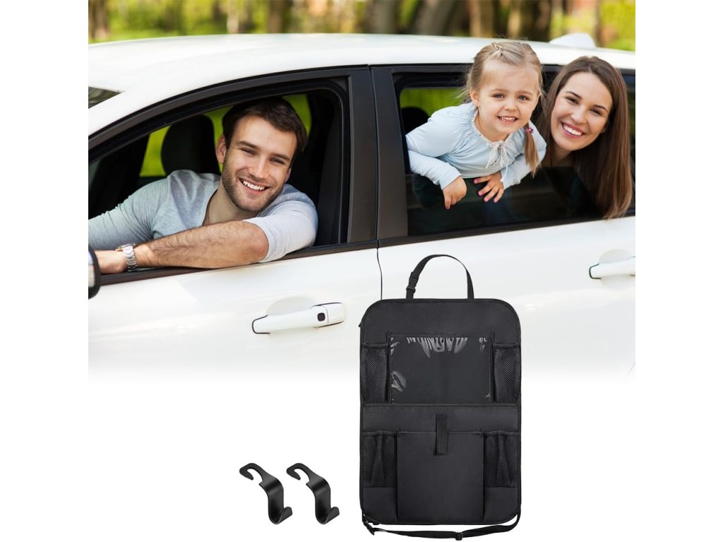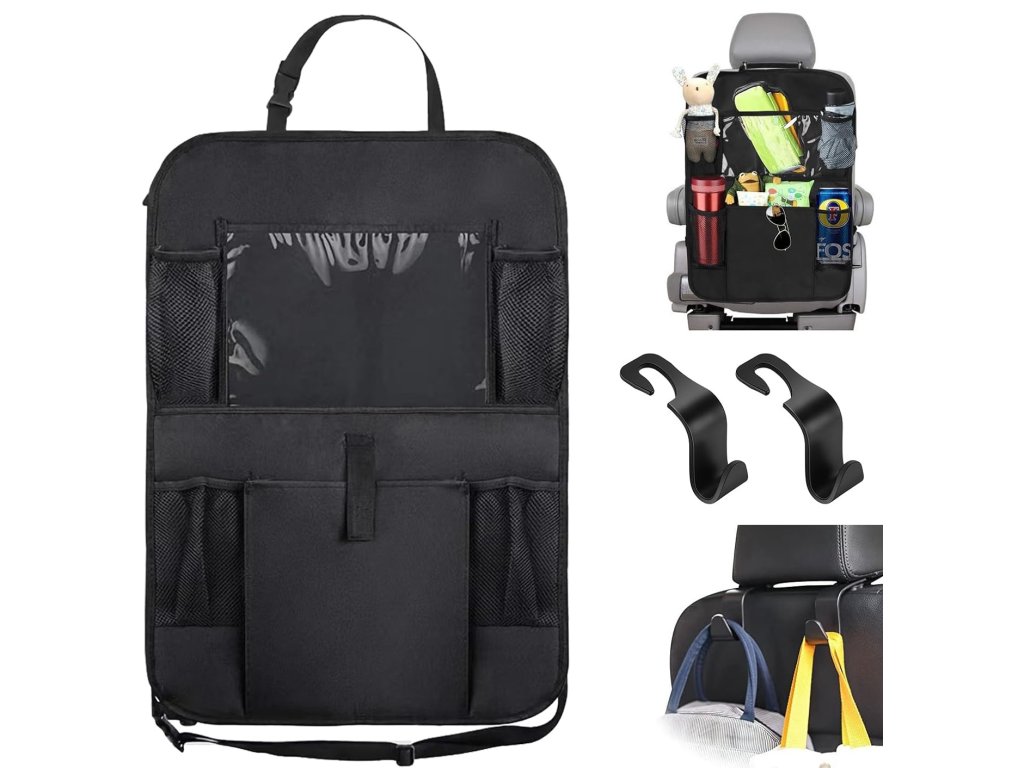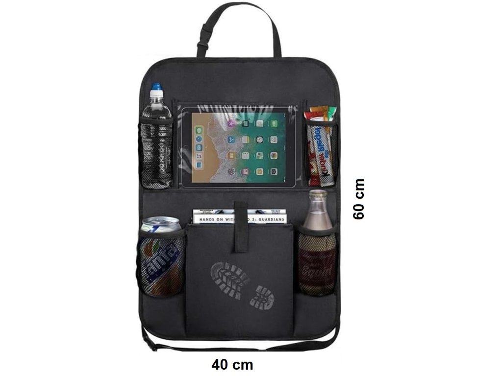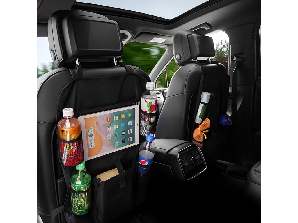 Organizér na zadní sedadlo auta je dodáván s několika druhy kapes a 1 průhledným okénkem iPadu, nabízí více úložného prostoru pro uložení nápojů, svačinek, časopisů, knih a jiných předmětů.