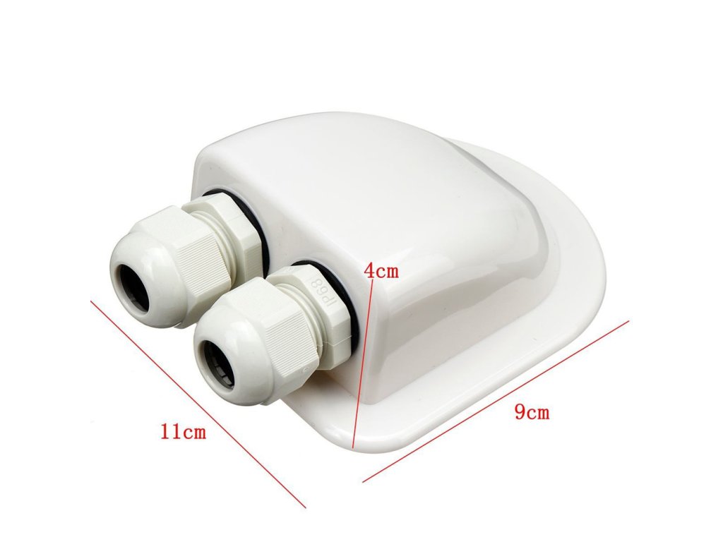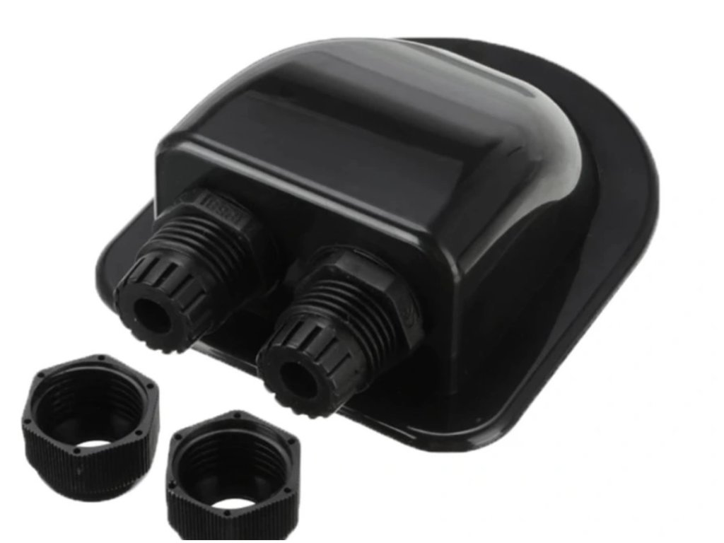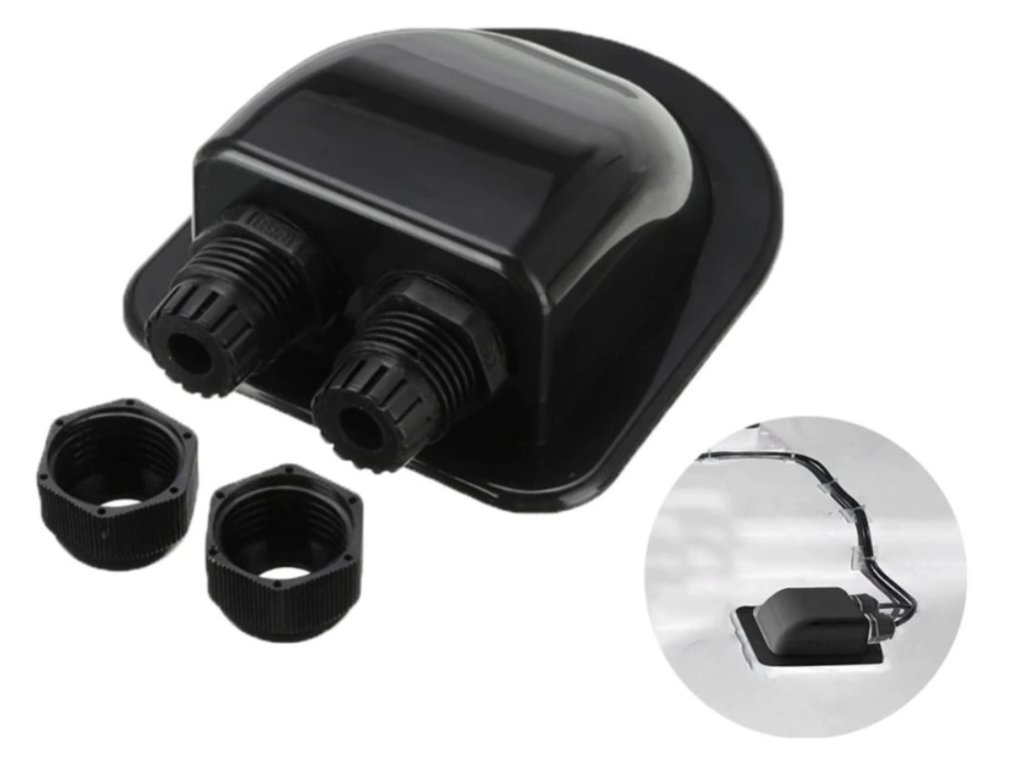 Střešní průchodka je odolná UV záření a slouží pro vodotěsný prostup kabelů od solárního panelu střechou karavanu, obytného vozu, lodě, apod.