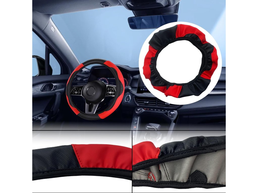 Univerzální protiskluzový potah na volant s průměrem 37-38 cm, černočervený
