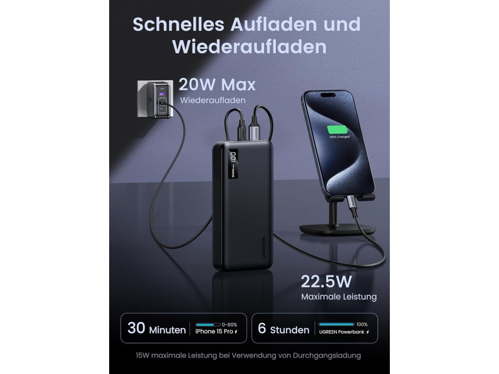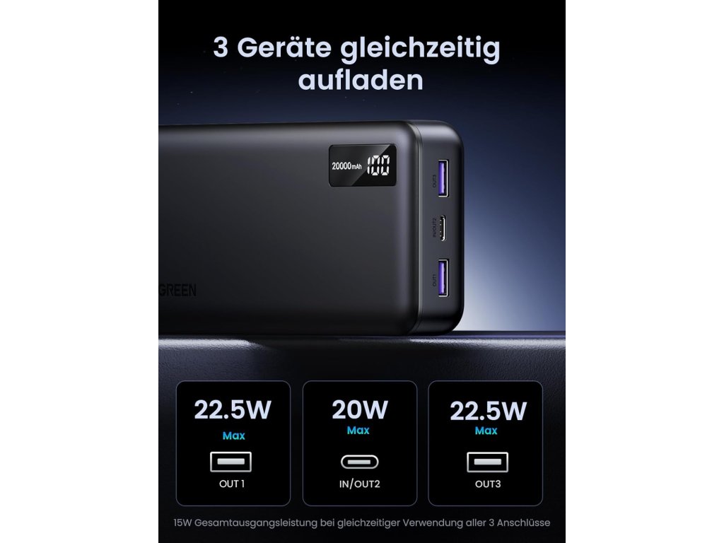 UGREEN Powerbanka 20 000 mAh / 22,5 W, PD 20 W, digitální displej