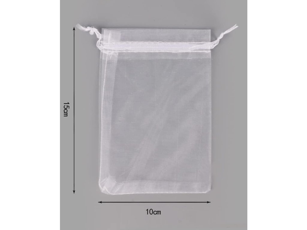 100ks dárkové sáčky z organzy se stahovací šňůrkou, 10x15 cm, bílé