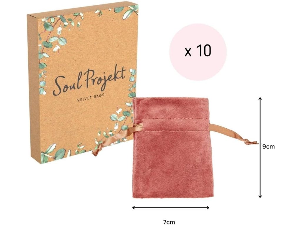 Soul Projekt 10ks sametové dárkové tašky 7x9cm se stahovací šňůrkou, kávová