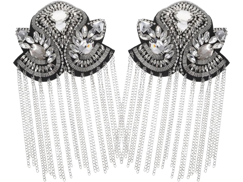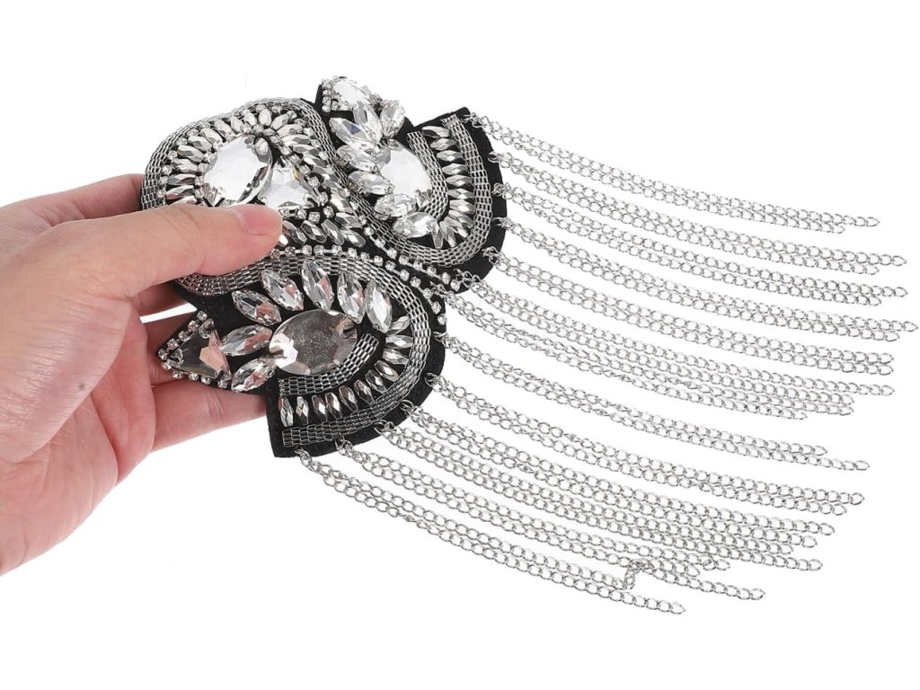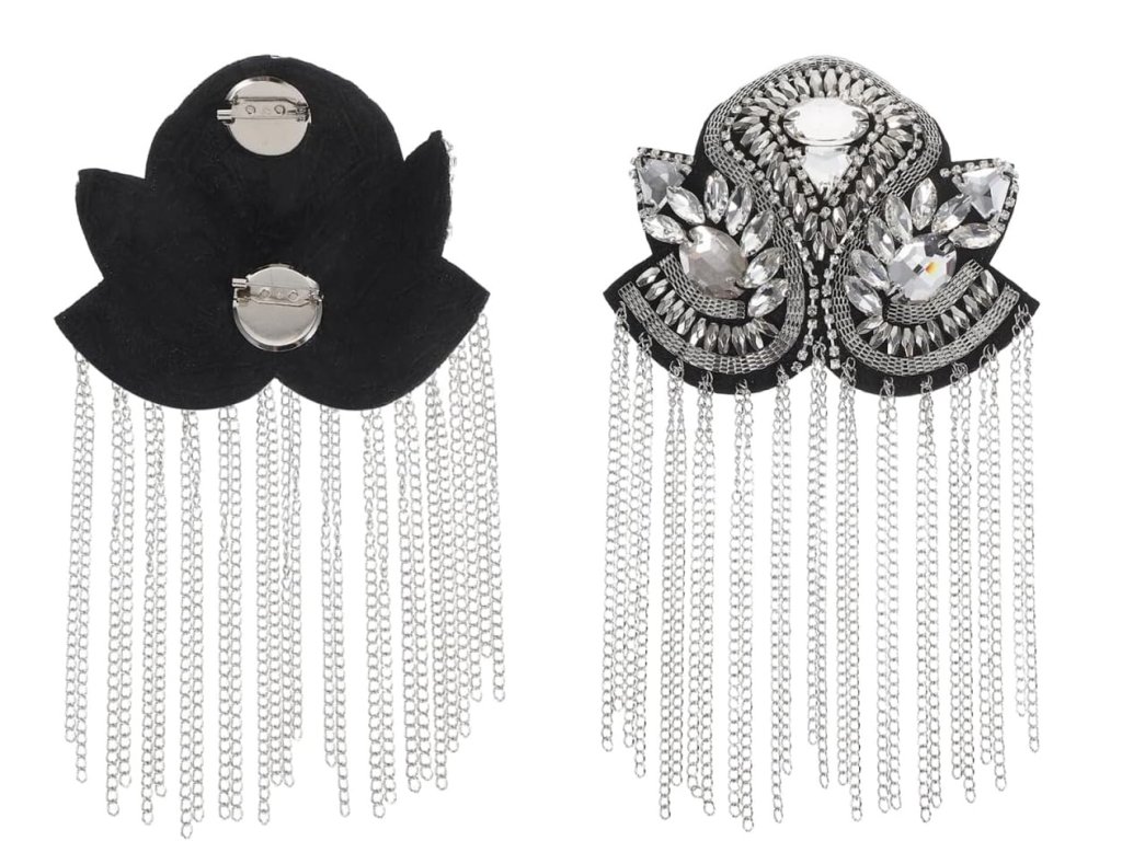 2ks retro nárameníků s diamantovými třásněmi a kamínkovými střapci