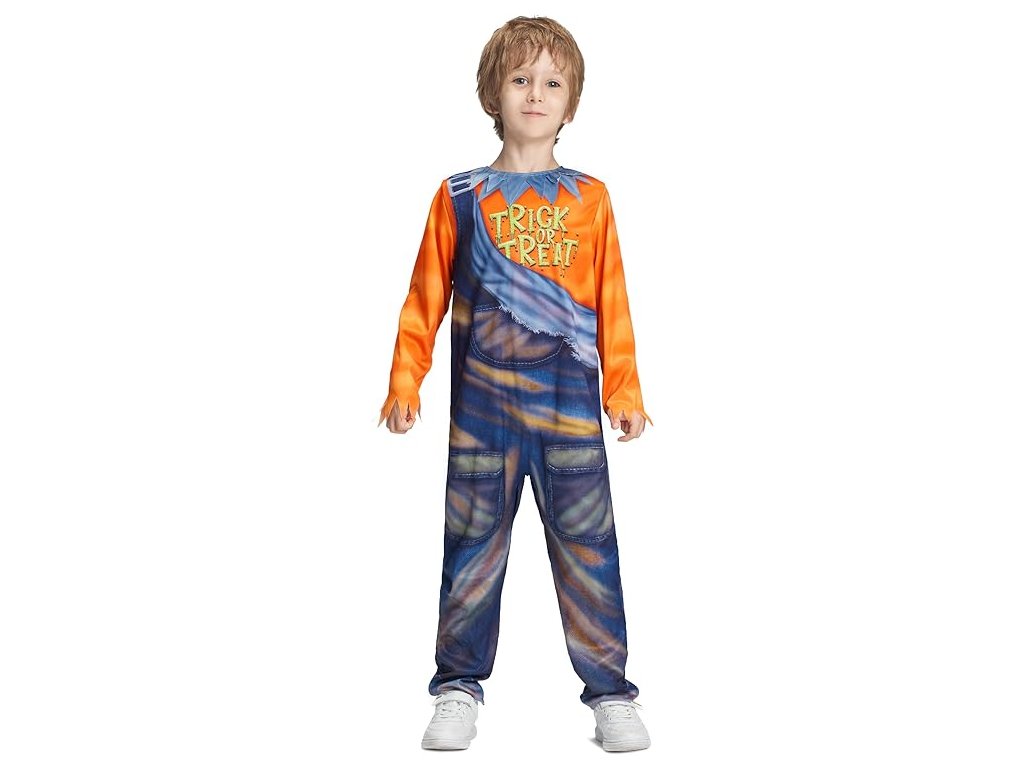 Oblek pro dýňového strašáka je dobře zpracován od látky až po švy. Suchý zip s dlouhou životností na zadní straně umožňuje dětem jednoduché oblékání a svlékání.