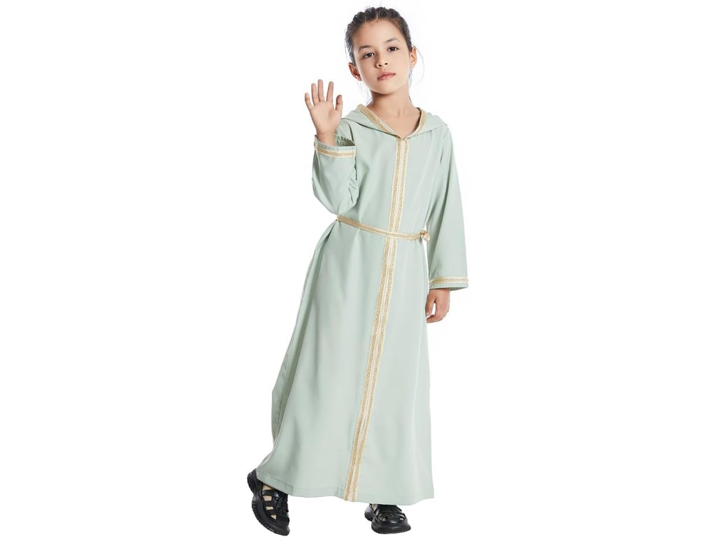 Ležérní jednodílné šaty s kapucí pro dívky, modlitební šaty - středovýchod, Dubaj.