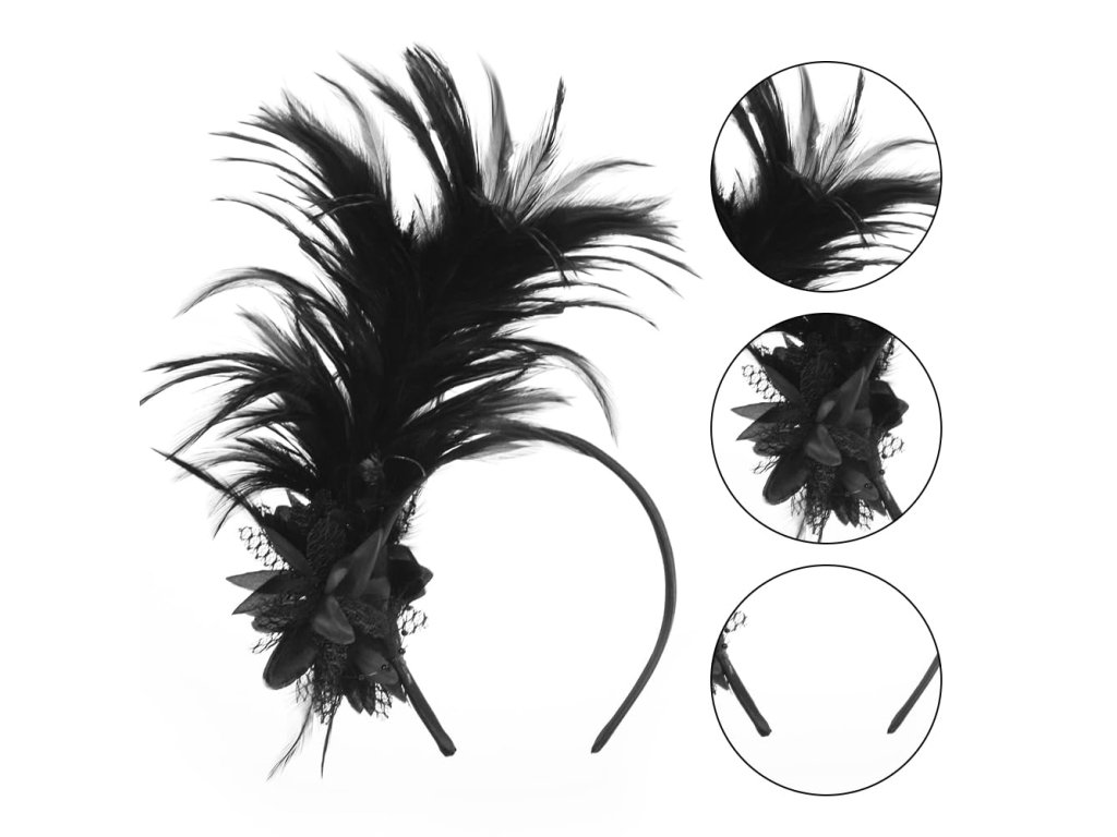 Ozdoba do vlasů s peřím, čelenka z 20. let, Gatsby, černá