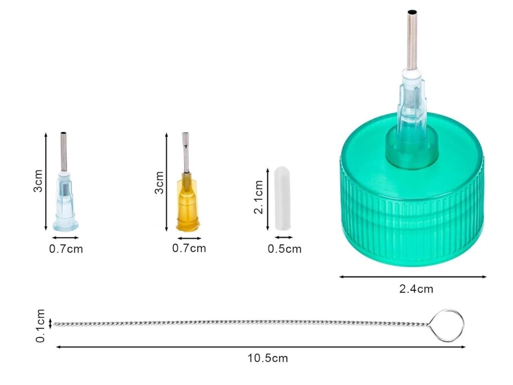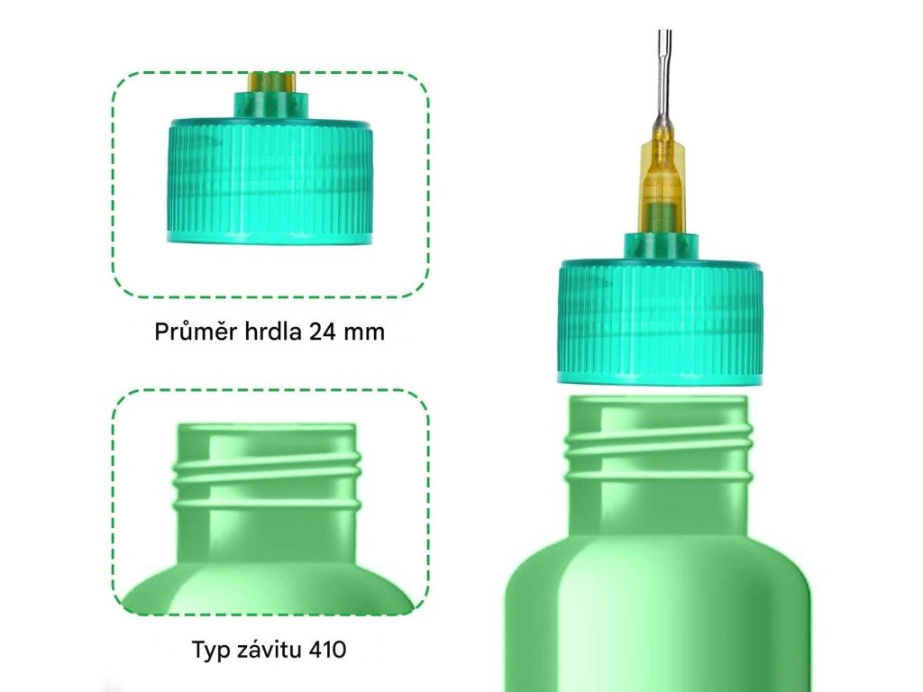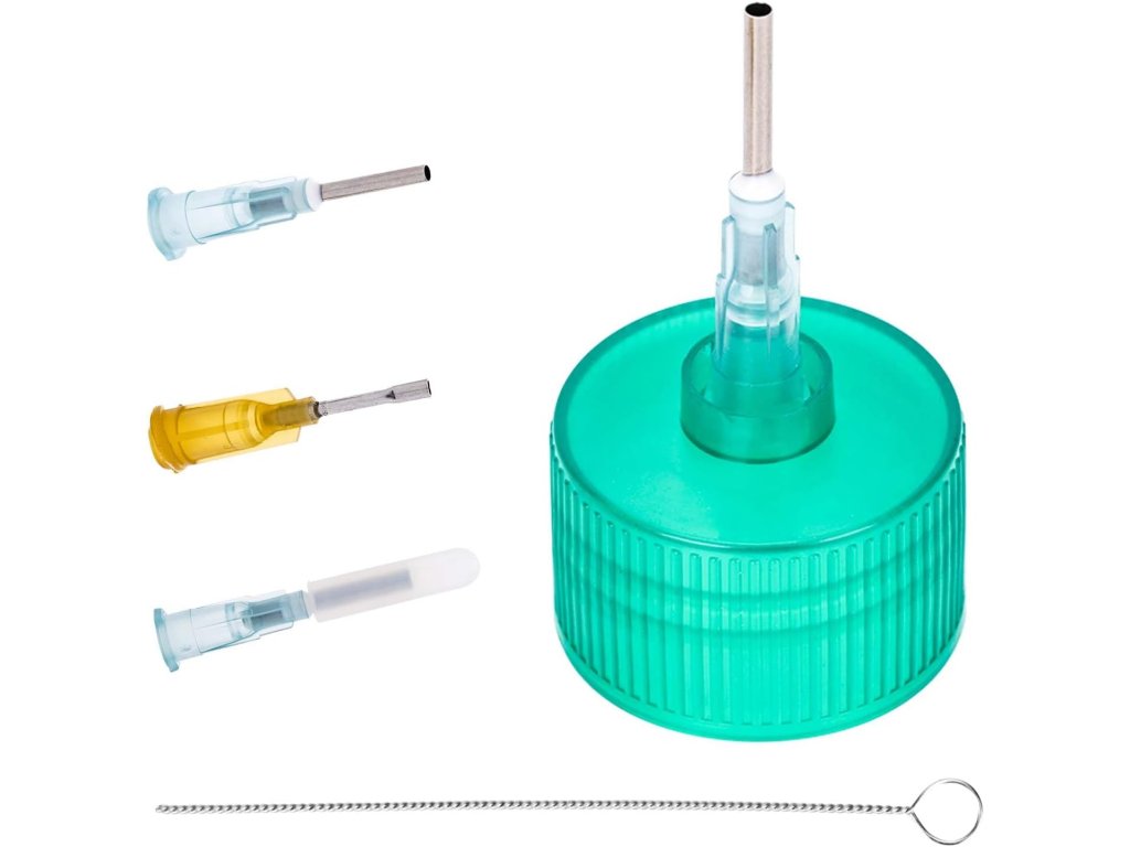 Uzávěry lahví jsou vhodné pro lahve s velikostí krku 24–410. Jehla lze snadno připojit k láhvi pouze jedním otočením, což je pohodlné a nezbytné pro ručně vyráběné projekty.