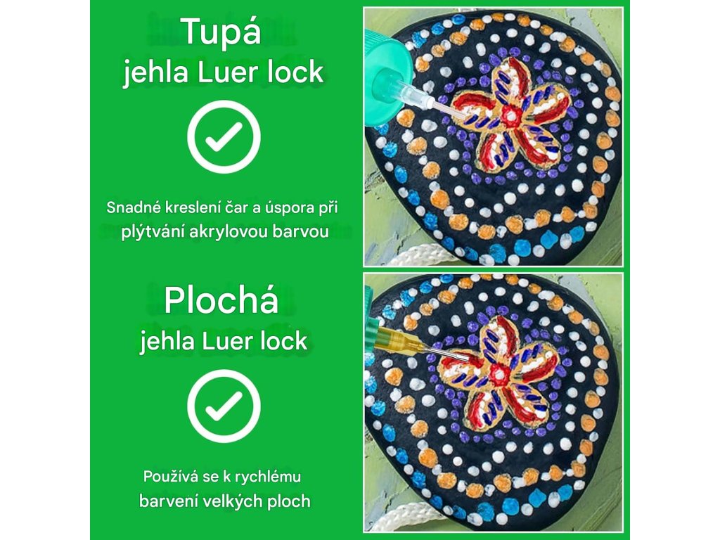 Kulaté jehly se používají pro kreslení linií, zatímco ploché jehly lze použít k barvení velkých ploch, které se perfektně hodí k nanášení osvěžovačů aut se složitějšími liniemi a detaily.