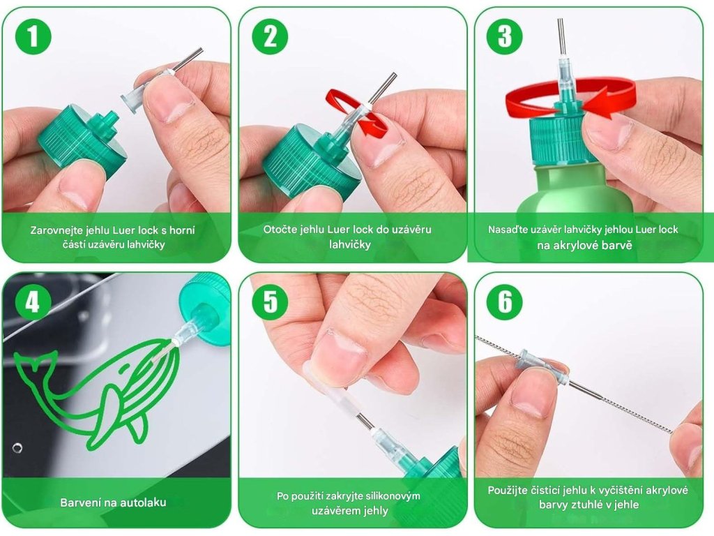 Pro výměnu akrylové barvy nemusíte kupovat žádné lahve s jehličkami. Vyměňte jednoduše pouze krytky.