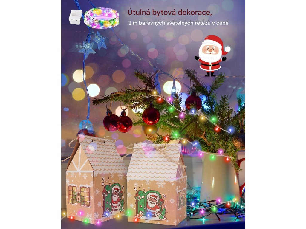 Nádherný světelný řetěz má tři režimy blikání v kombinaci s 24 dárkovými krabičkami pozvednou vánoční dekoraci na novou úroveň a činí ji živější a zajímavější.