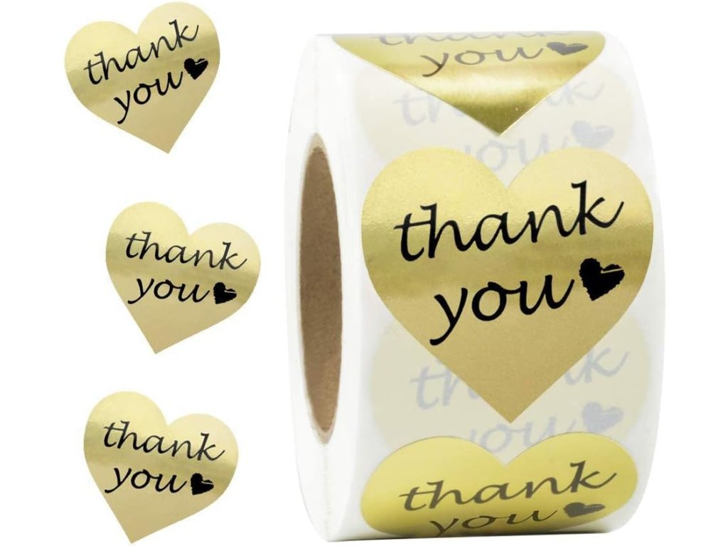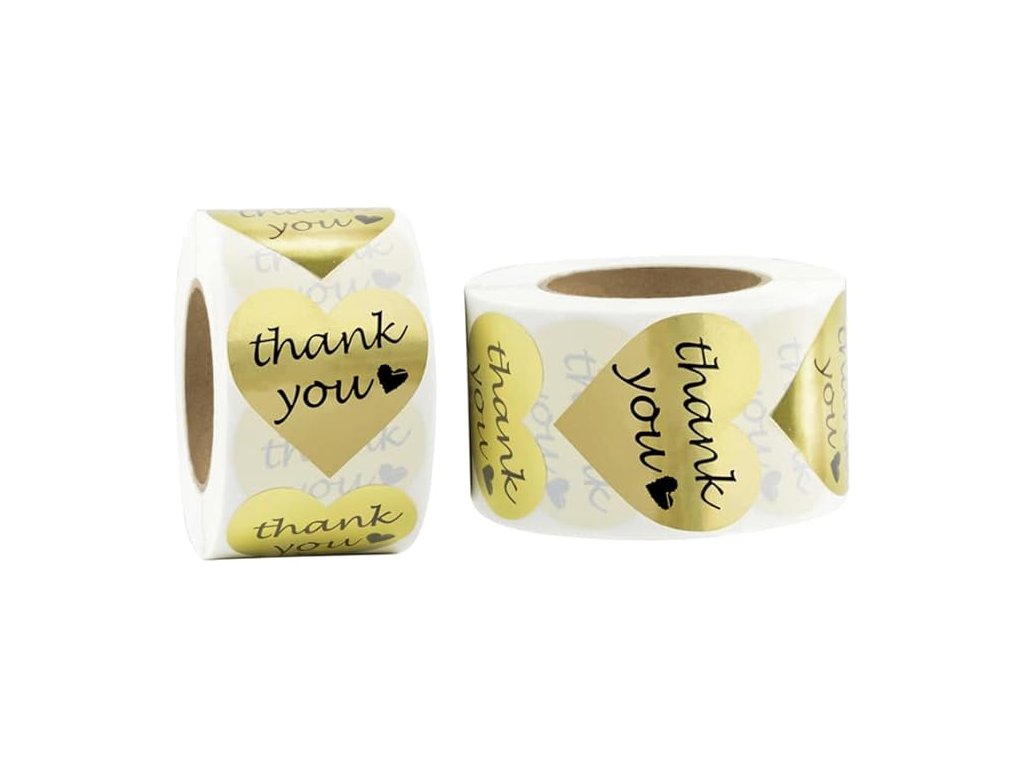1000ks Samolepky s poděkováním "thank you", 2x role 500ks, 3,8 x 3,8 cm, lesklé