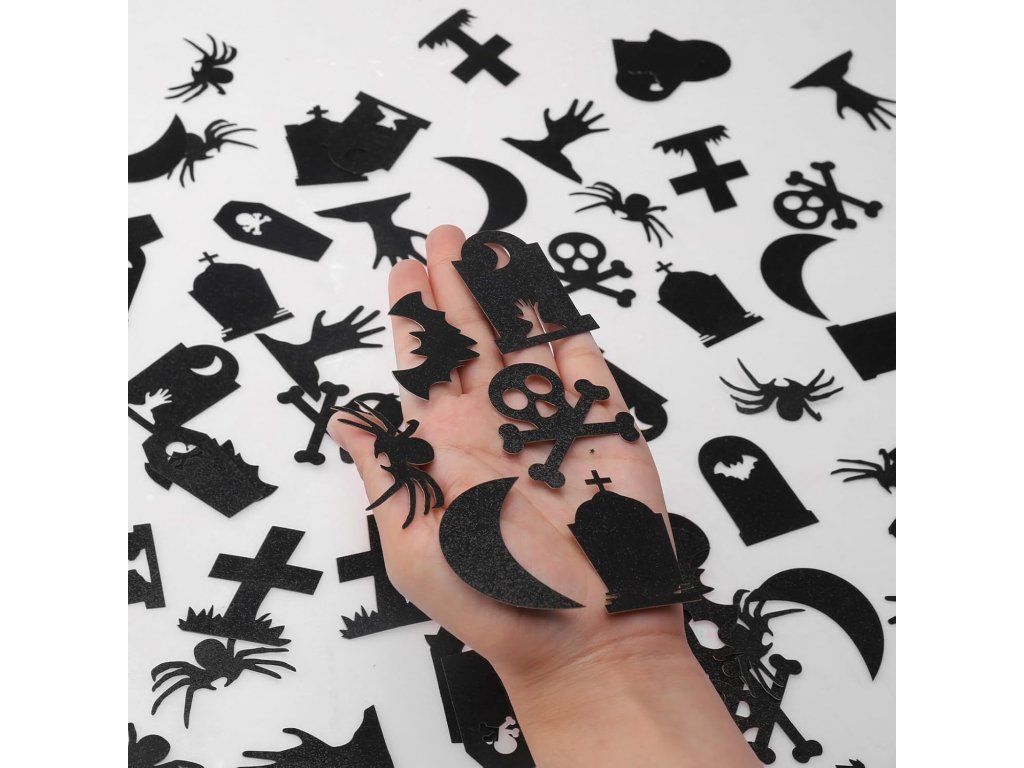 Různé tvary a velikosti halloweenských konfet lze podle potřeby kombinovat a vytvořit tak, aby vyhovovaly vašim různým potřebám dekorace.