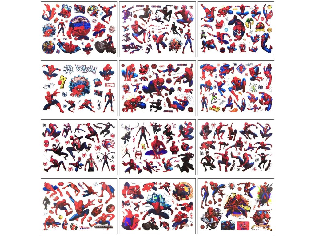 12 listů dětských dočasných tetování hrdinové - Spiderman