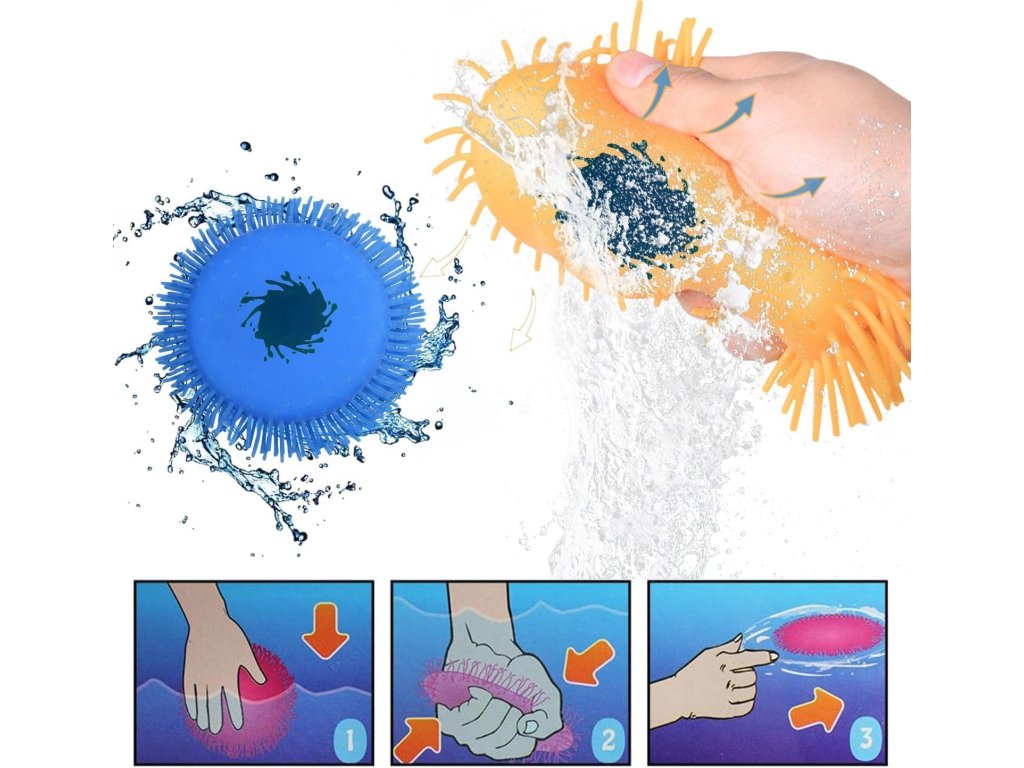 Jednoduše ponořte disk do vody, nasákne skrz póry vodu a uloží ji. Při házení, hraní a chytání pak voda vtipně stříká.