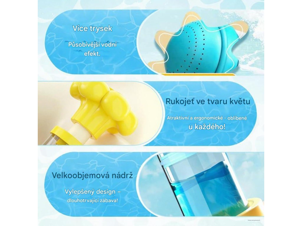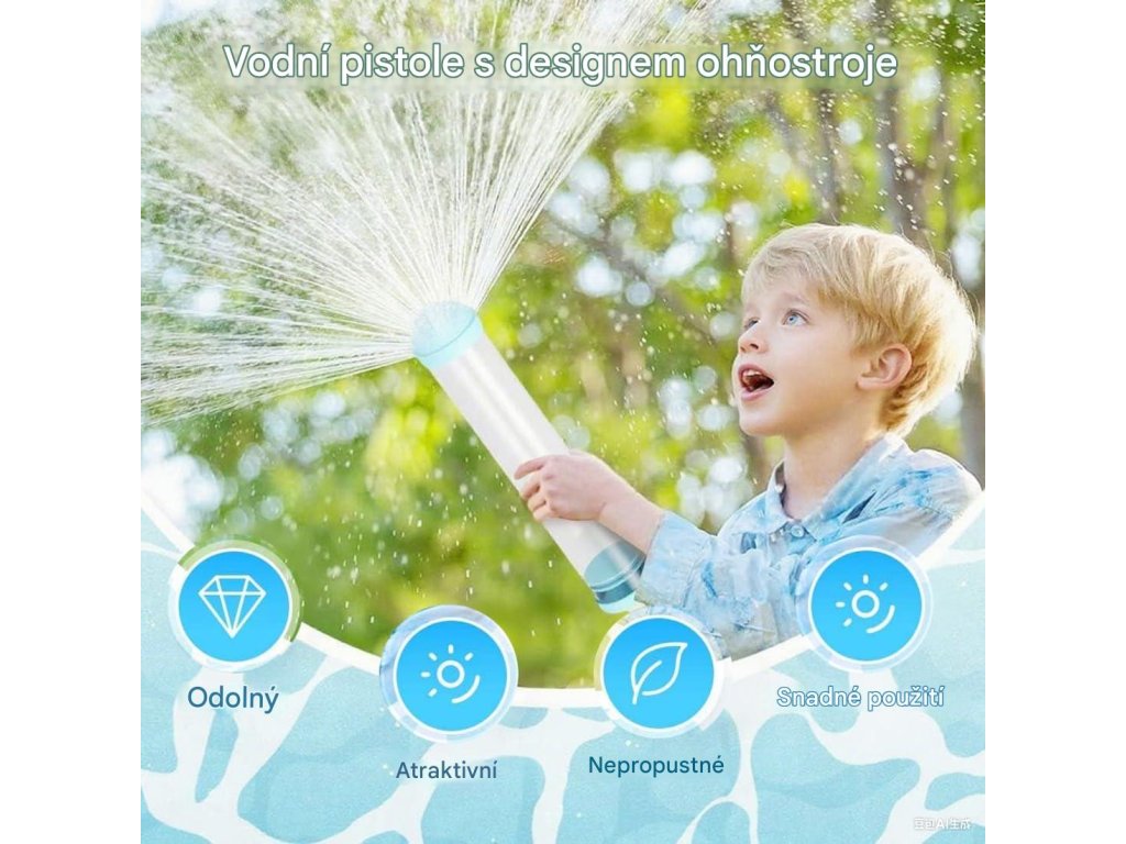 Jednoduše ponořte → pumpujte → spusťte! Patentovaný systém tlakového paprsku vytváří fontány s jiskrnou vodou v mžiku, není potřeba žádná montáž ani baterie. Ideální pro spontánní zábavu!
