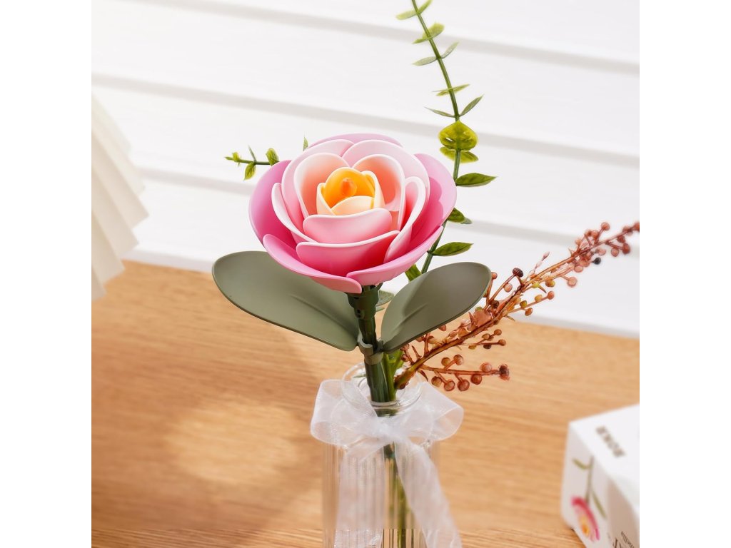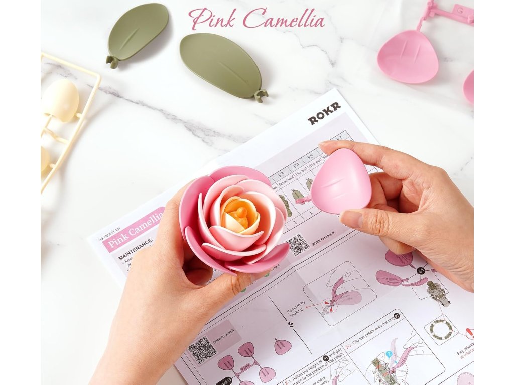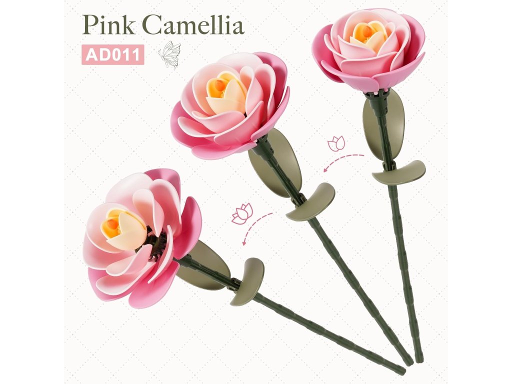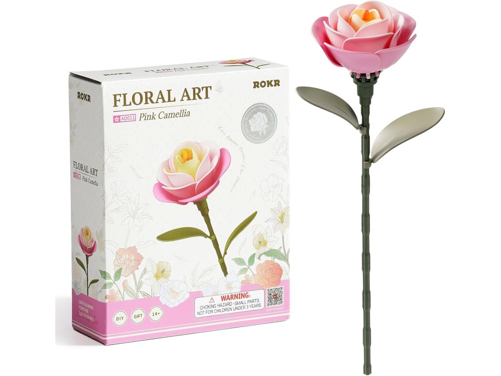 Květinové 3D puzzle, stavebnice umělé květiny, růžová kamélie