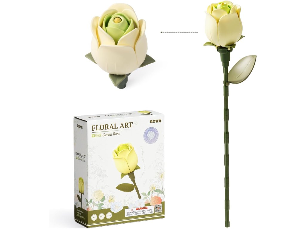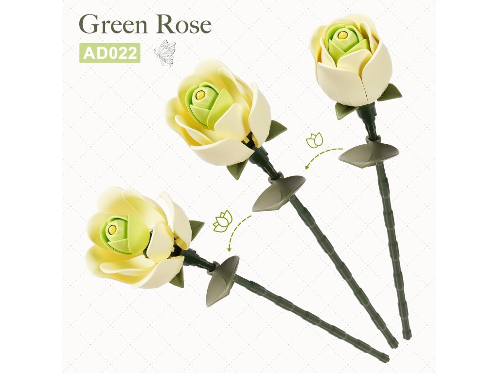 Květinové 3D puzzle, stavebnice umělé květiny, zelená růže