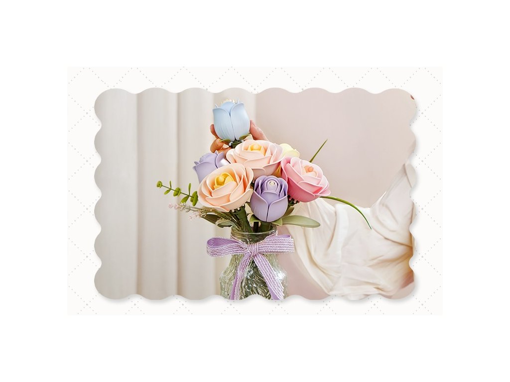 Díky postupnému sestavení si můžete sami vytvořit skutečné květiny a užívat si radost z vytváření od nuly.