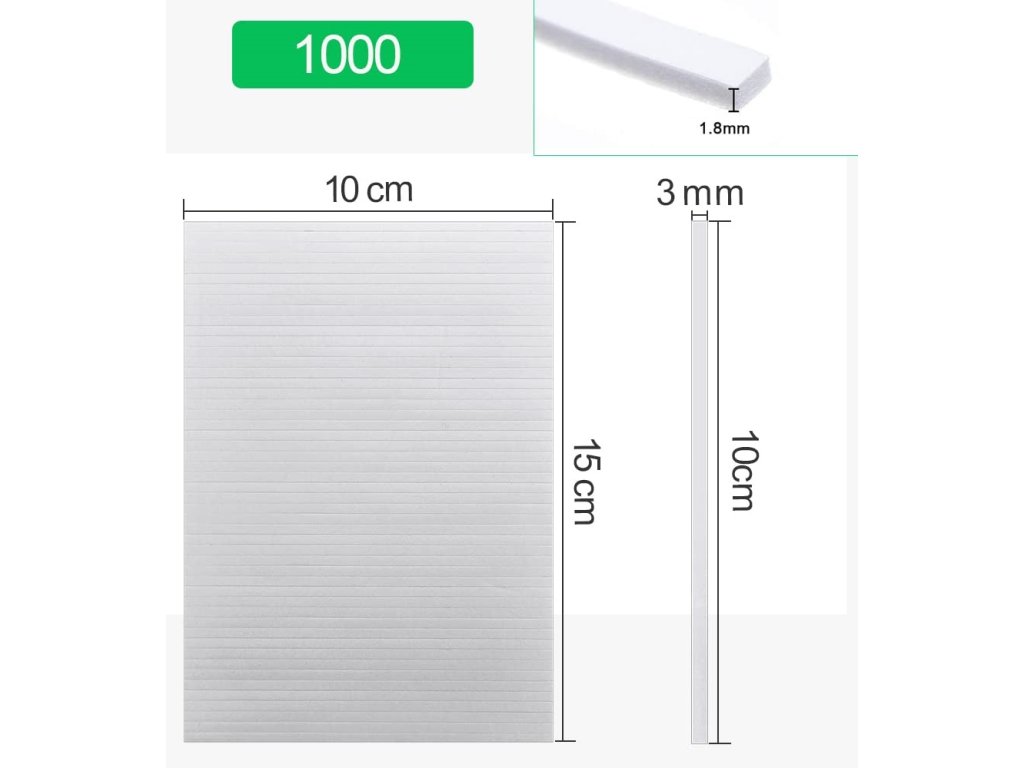 Balení s 20 listy, 1 list má 50 oboustranně lepicích 3D pěnových proužků, celkem 1000 oboustranně lepících pěnových proužků.