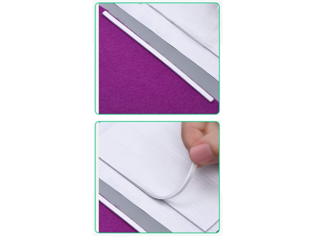 Lepivé pěnové pásky lze použít na obou stranách, každý kus má předřezané oboustranné pěnové proužky, musíte pouze stáhnout bílou ochrannou fólii na povrchu a nalepit druhou stranu. Umístěte ji tam, kde musí být, a pak můžete své výrobky jednoduše umístit na správné místo.