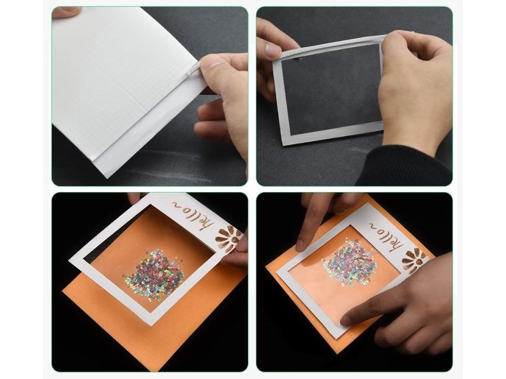 Oboustrannou pěnovou pásku můžete použít k nalepení malých předmětů na karty nebo jiné kutilské práce, abyste dosáhli 3D efektu, pěnové pásky lze stohovat na sebe.