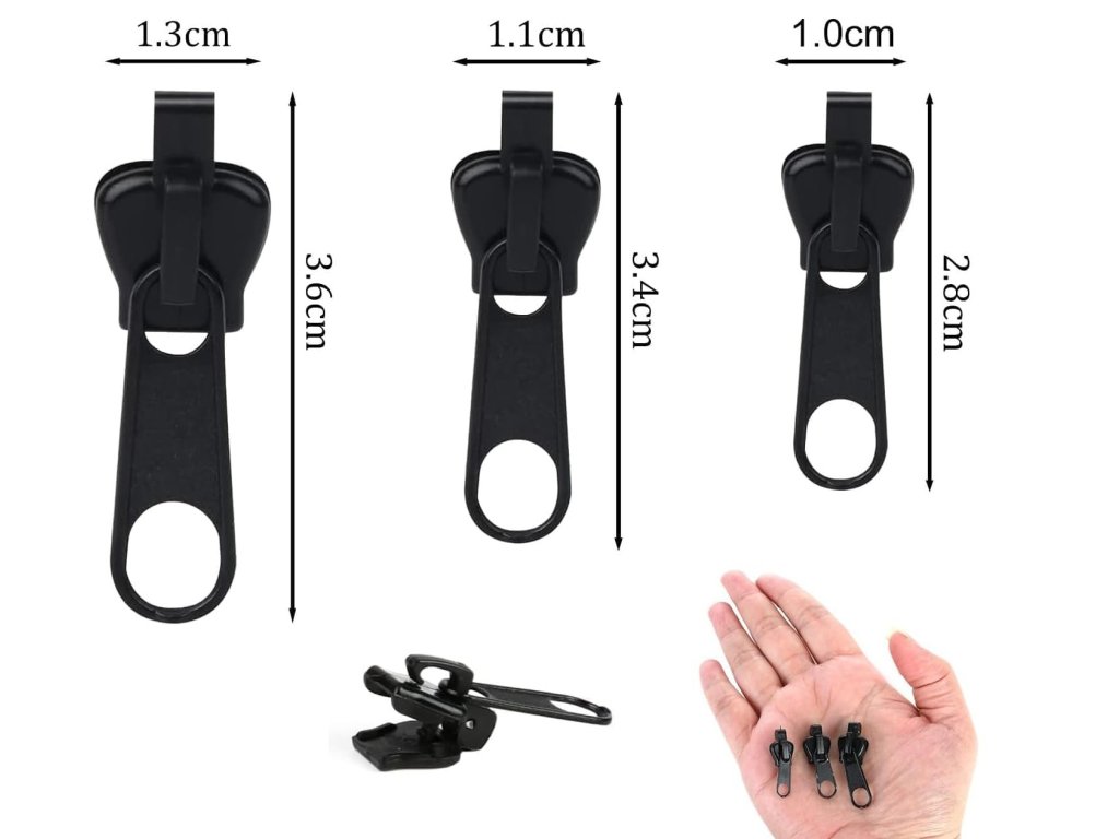 Náhradní jezdec může vyřešit různé problémy se zipem. Kompaktibilní s nejběžnějšími zipy pro mikiny, bundy, sukně, kozačky, batohy, peněženky, atd.