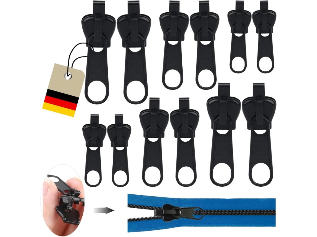 Hodí se k výměně nebo opravě starých nebo poškozených zipů na batozích, bundách, peněženkách, zavazadlech, džínách, atd.