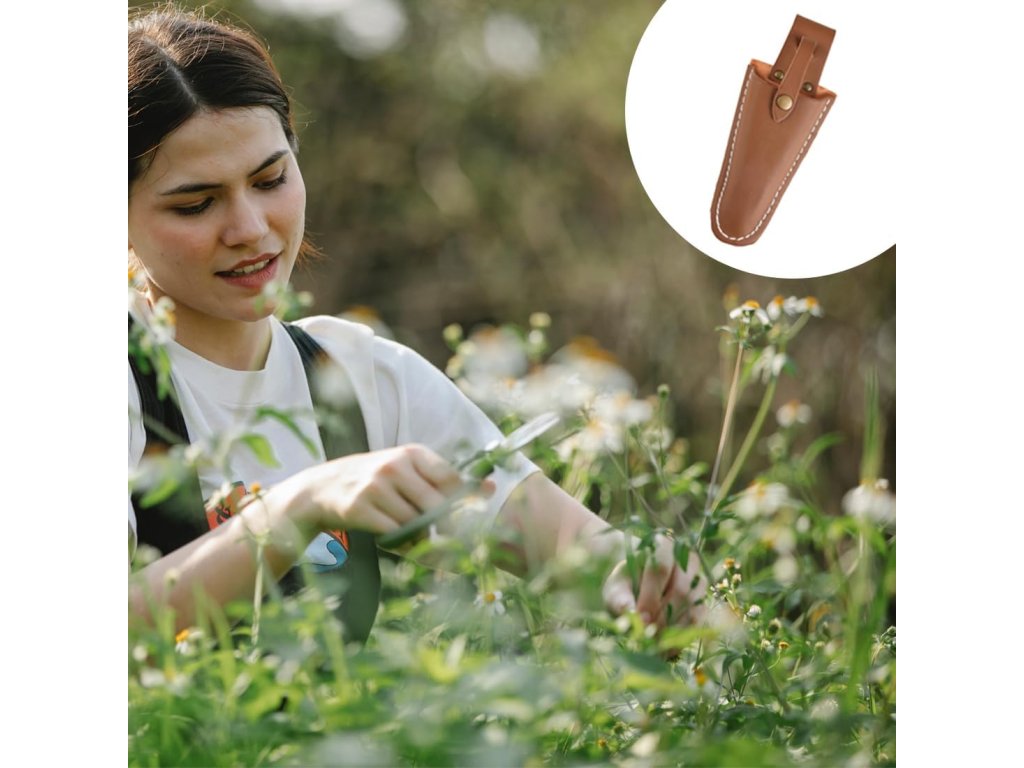 Maximální šířka zahradních nůžek kožené pouzdro činí 8 cm, nejužší část 3,5 cm, hloubka 15 cmů.