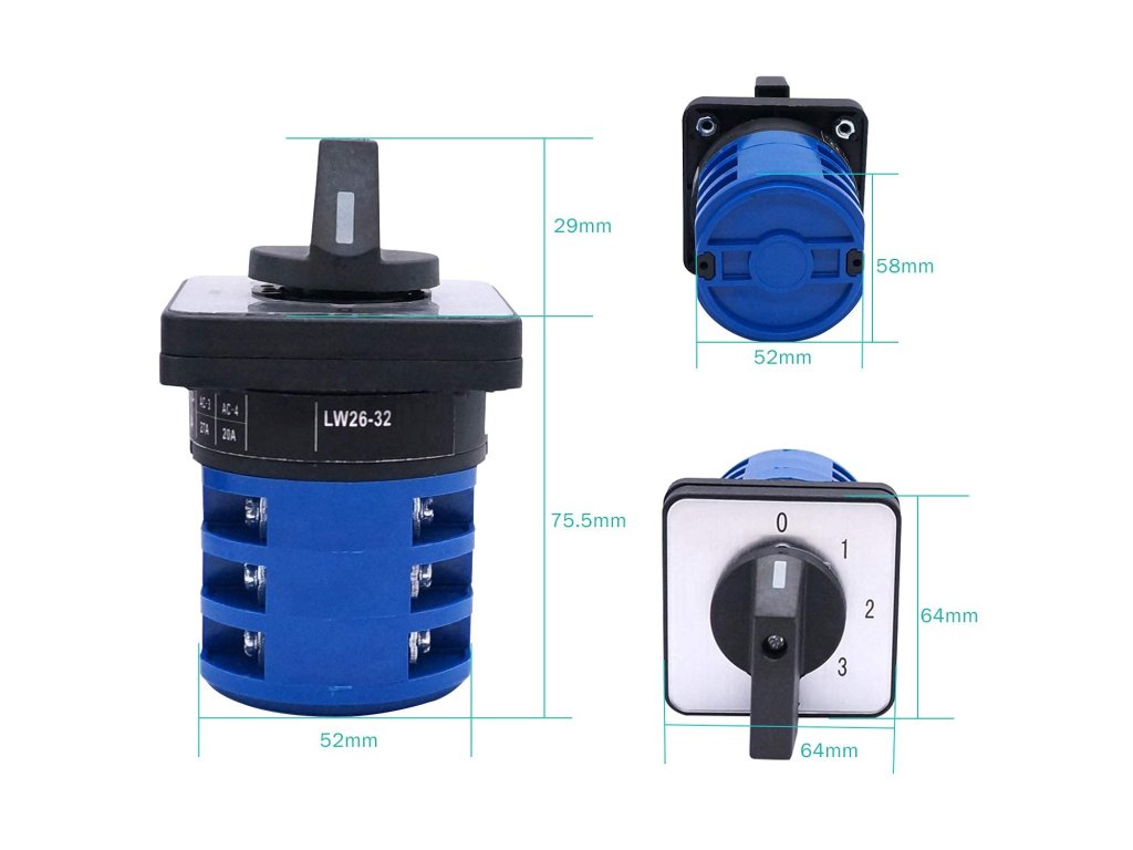 Univerzální vačkový spínač, otočný spínač, 4 polohy, 32 A, 690 V, LW26-32 0-3/3