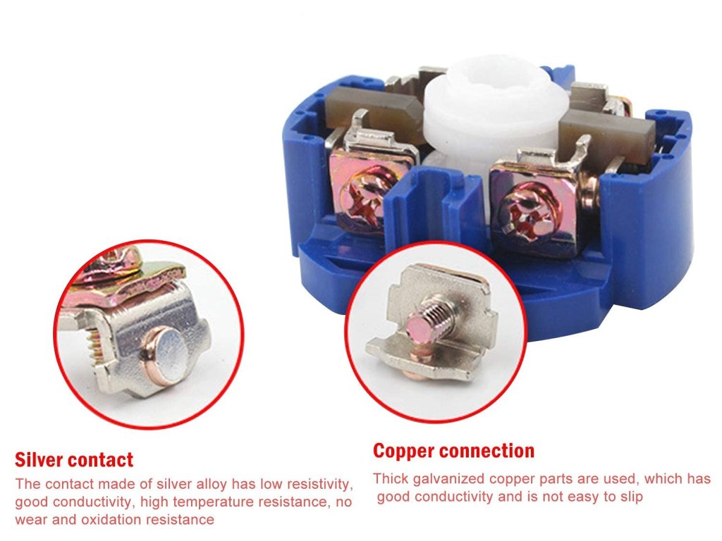 Materiál: PC materiál zpomalující hoření, vysoká teplotní odolnost, kvalitní měděné díly s bodem slitiny stříbra, dobrá vodivost a odolnost proti oxidaci.
