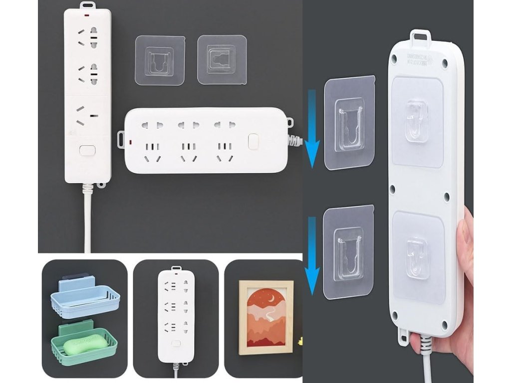 Samolepicí nástěnný háček se používá v interiéru i exteriéru, například v kuchyních, obývacích pokojích, koupelnách atd., a lze jej použít k zavěšení předmětů, jako jsou elektrické zásuvky, plakáty, květináče, odpadkové koše, úložné krabice atd.