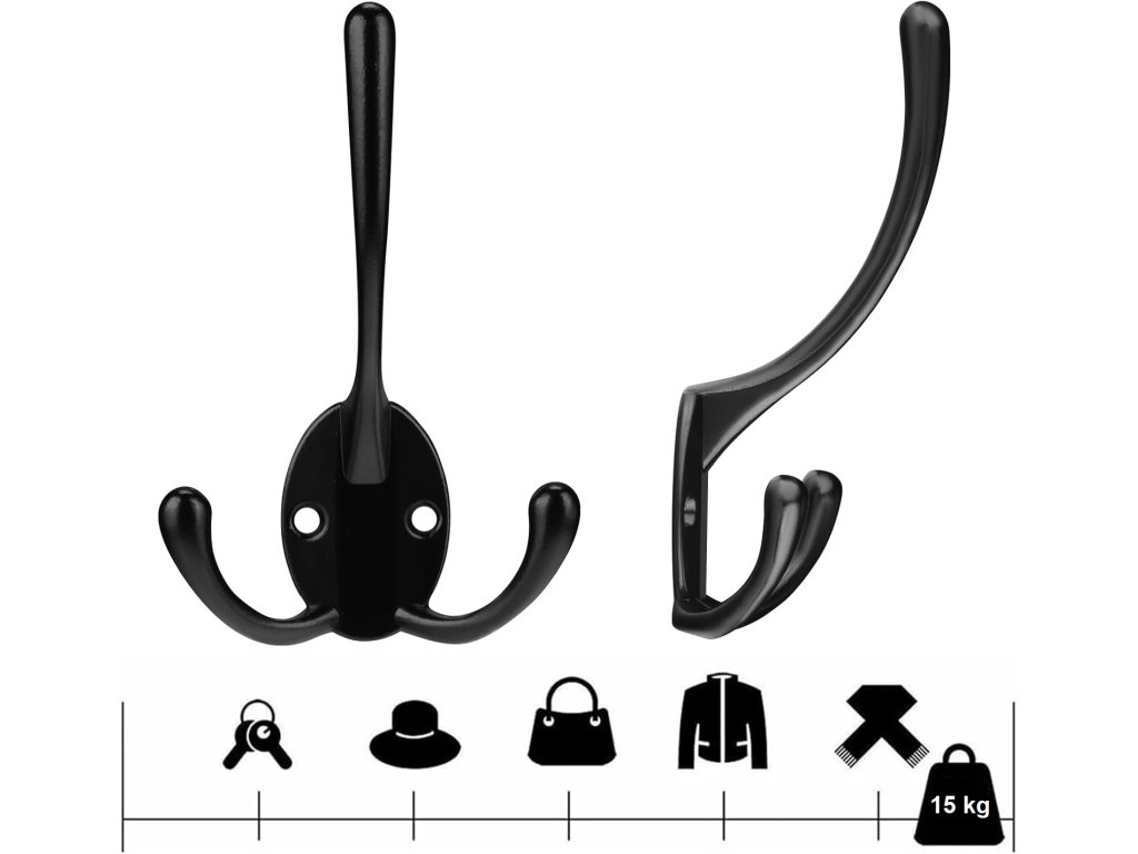 Trojité háčky na stěnu jsou vyrobeny ze slitiny kovu a zinku, silné, trvanlivé, nerezové, odolné proti opotřebení, odolné proti poškrábání, mohou současně zavěsit několik těžkých oděvů, ale také jednoduše zavěsit například školní tašky.