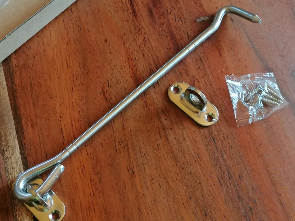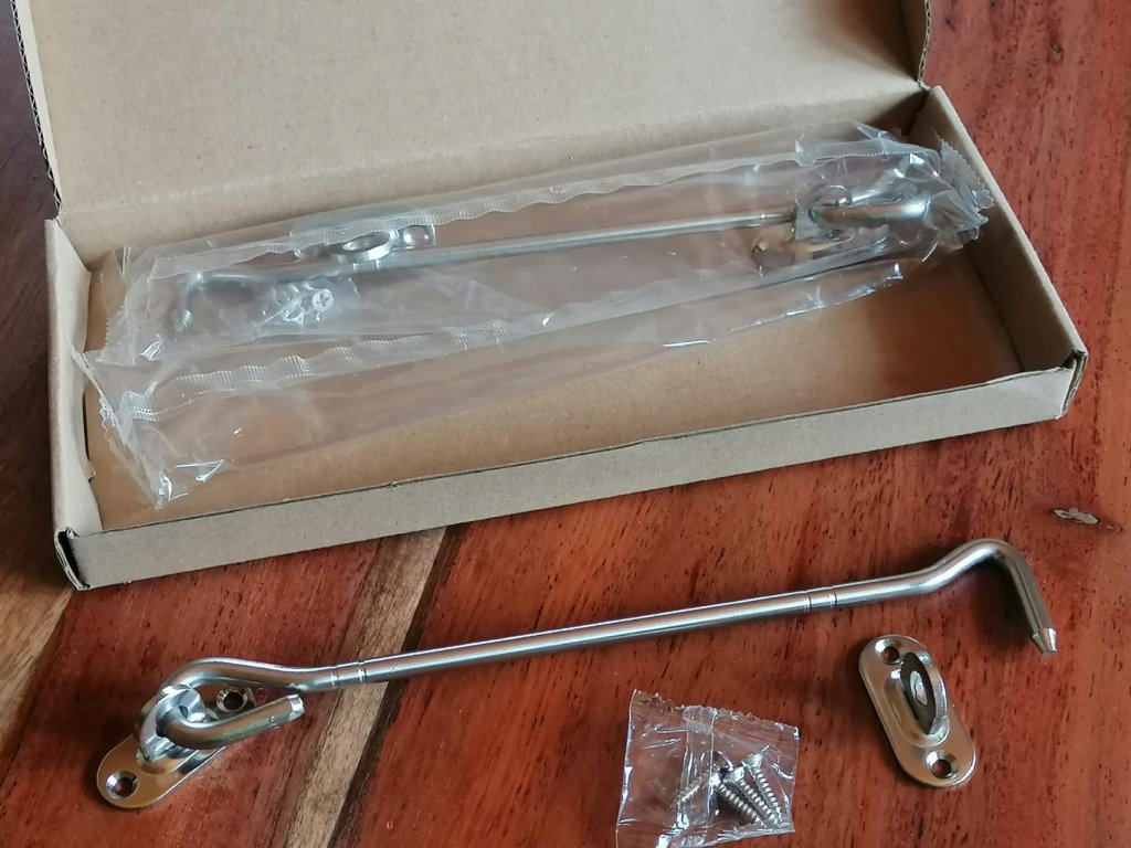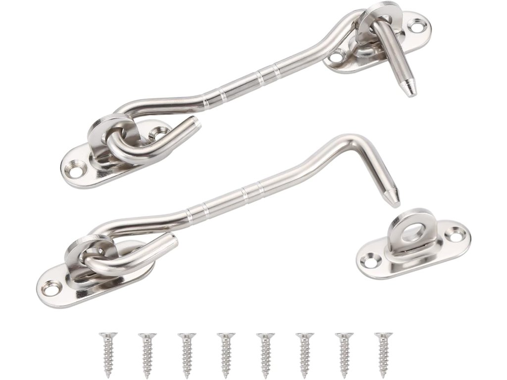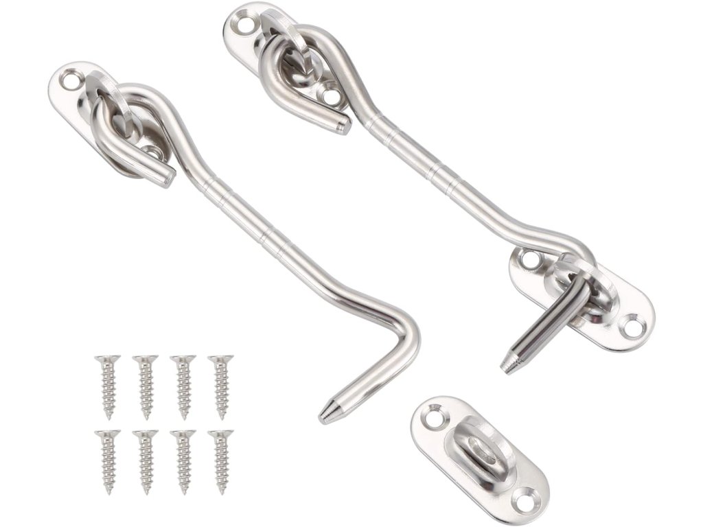 2ks háček s očkem 100 mm, 8 šroubů, dveřní západka, ušlechtilá ocel