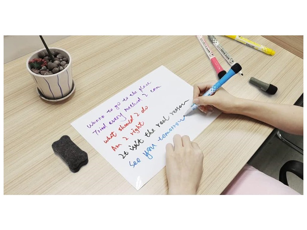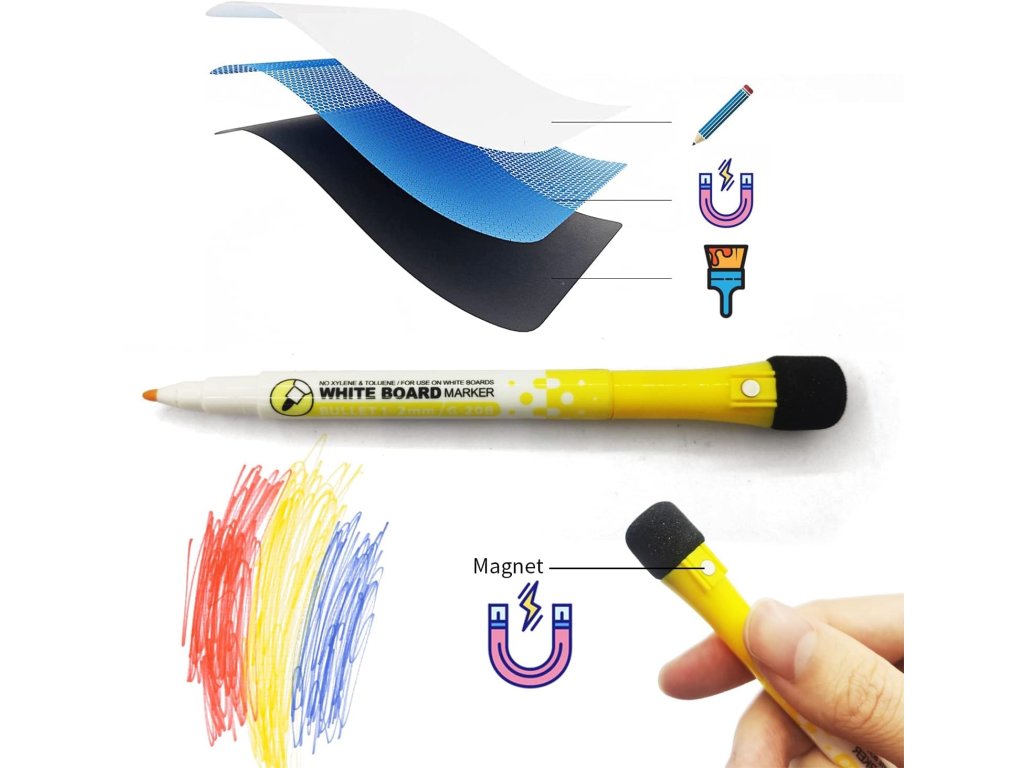 Vodotěsná magnetická tabule je omyvatelná a lze ji libovolně často používat, aniž by zanechávala skvrny nebo zbytky. Po psaní můžete barvu smazat stěrkou, houbou nebo ubrouskem.