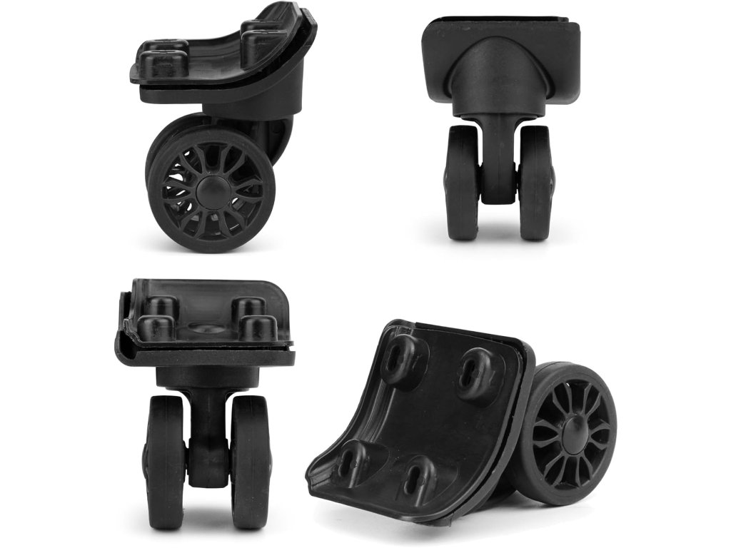 Náhradní kolečka na zavazadla jsou vyrobena z kvalitního plastu, robustní a odolné proti opotřebení, vhodné pro opravu opotřebovaných kol kufrů.
