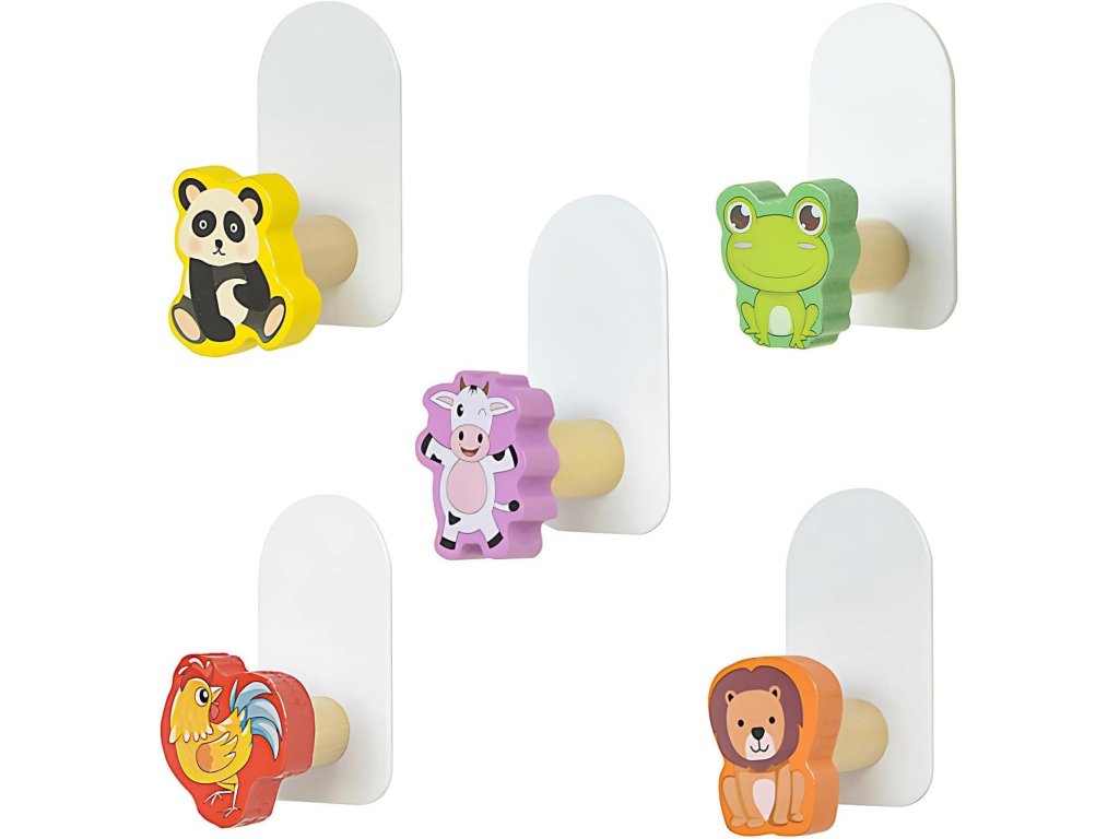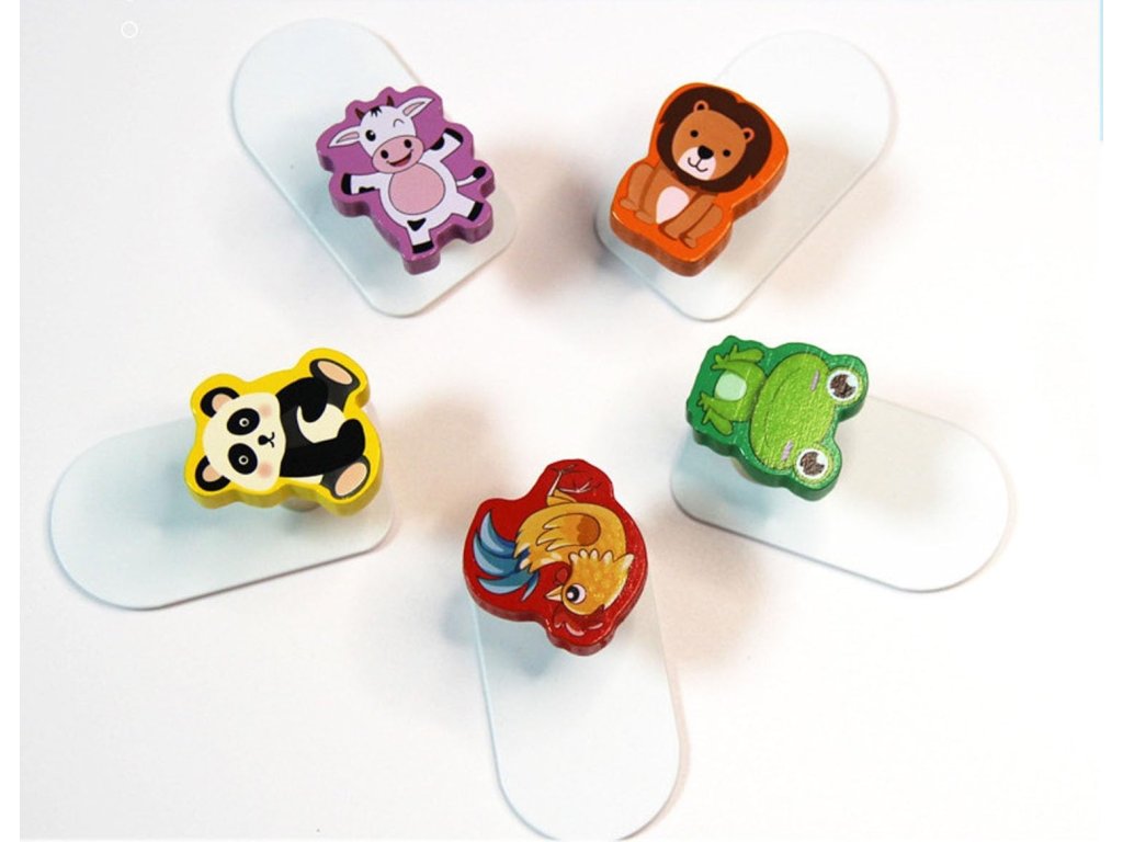 Spodní deska tohoto dětského samolepicího závěsného háčku je vyrobena z masivního lakovaného kovu, spojovací díly a zvířecí vzory z masivního dřeva a lakované, což je trvanlivé, stylové a krásné.