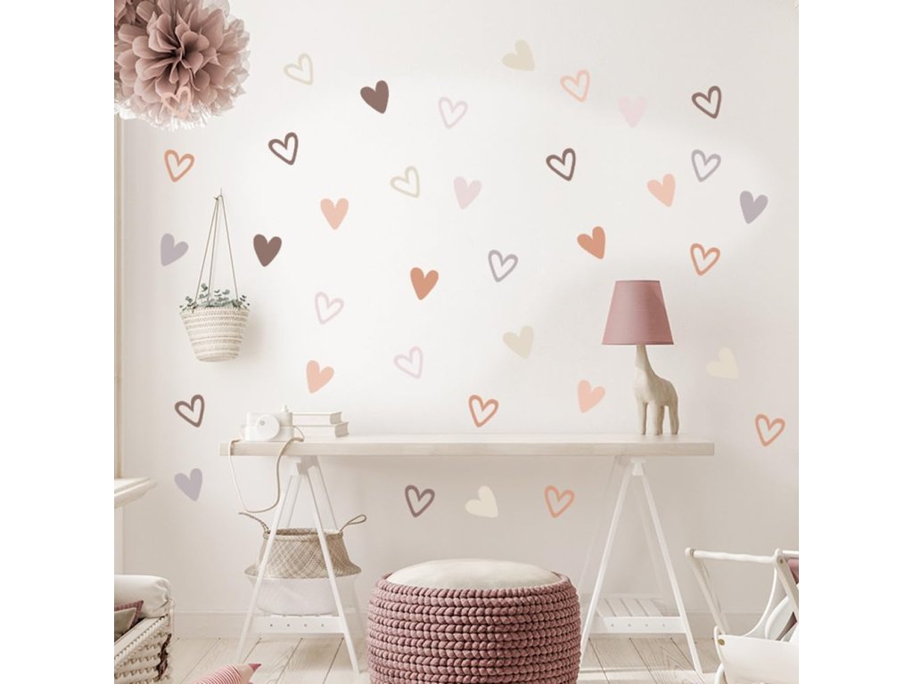 6 listů 30 x 22,5 cm se 72 vzory srdce pro dekoraci stěny ve dvou provedeních (36+36).