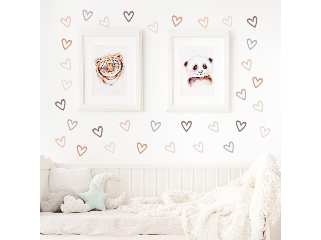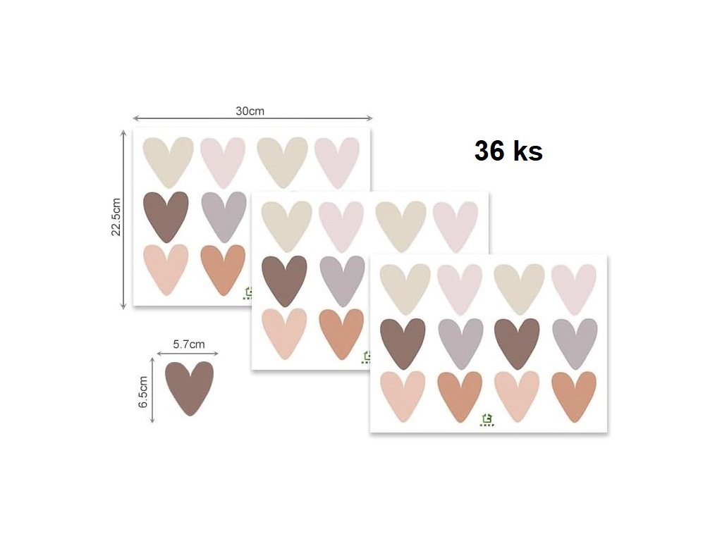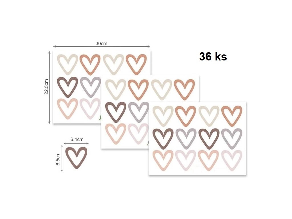 Každá samolepka ve tvaru srdce měří 5,7 x 6,5 cm – ideální pro kreativní dekoraci stěn. Velikost umožňuje flexibilní uspořádání pro harmonický design.