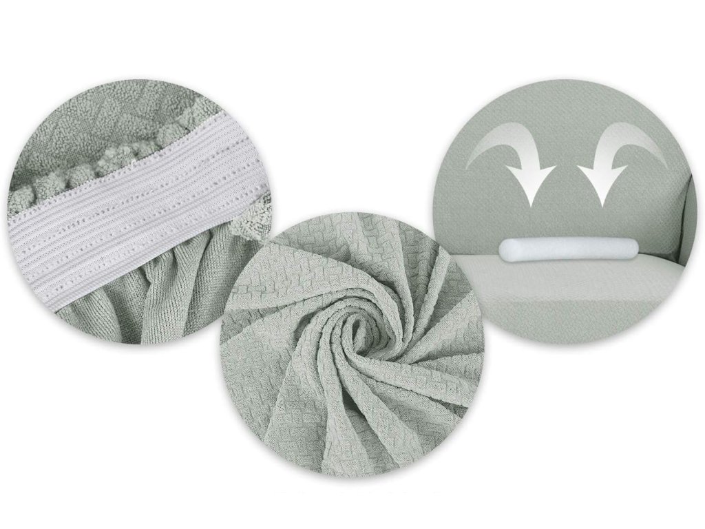 Vyroben z 95 % polyesteru a 5 % spandexu. Díky přidání vysoce hustých, elastických vláken spandexu se jednoduše vejde bez deformací, ať je vaše pohovka velká nebo malá.
