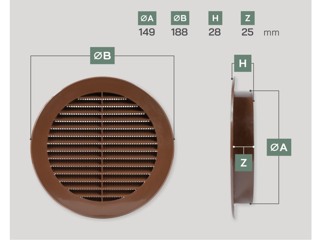 EUROPLAST Kryt větracího otvoru 150 mm, kulatá mřížka, hnědá