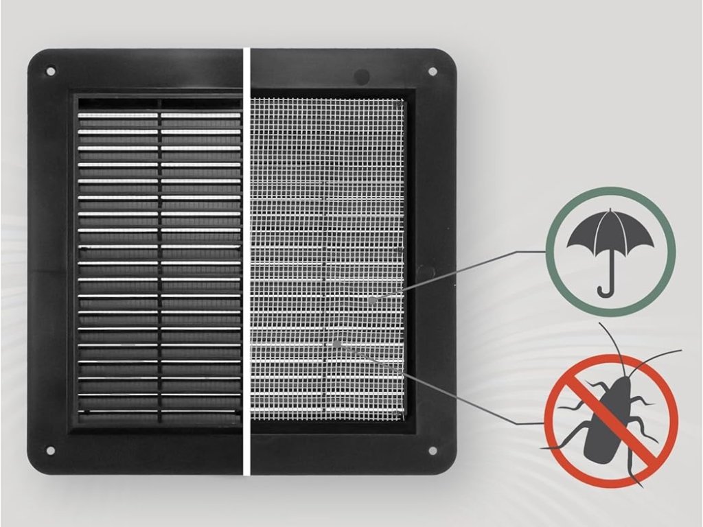 Integrovaná síť proti hmyzu. Pro nasávání nebo odsávání, pro venkovní i vnitřní použití, na stěny nebo stropy, ideální pro garáže, kůlny, kanceláře, koupelny, obytné vozy nebo karavany a všude, kde je potřeba aby proudil vzduch.