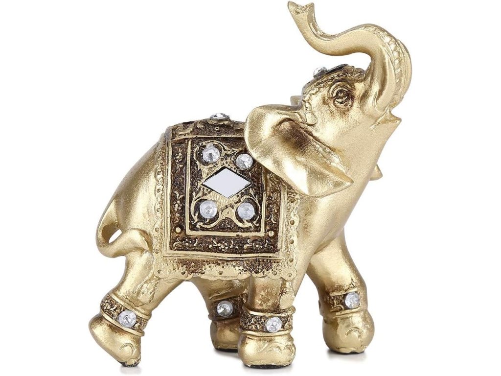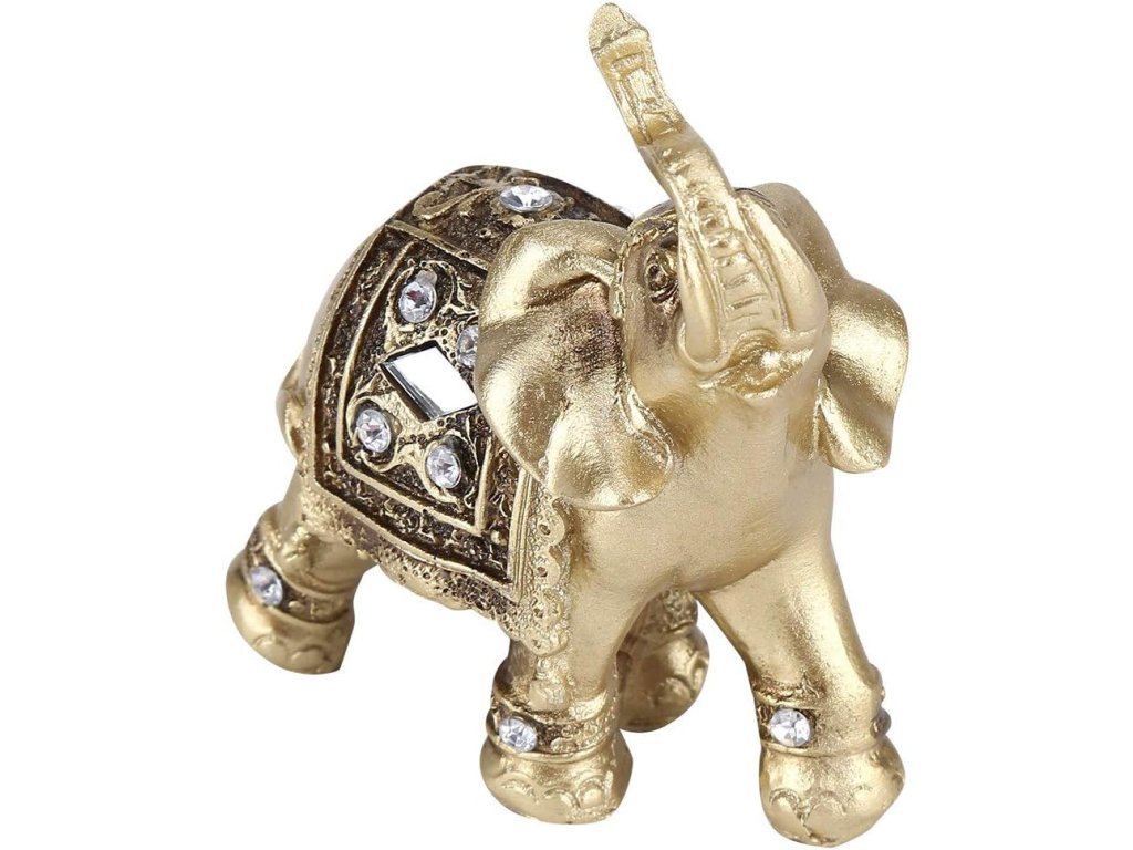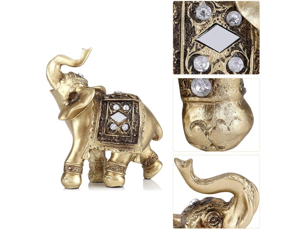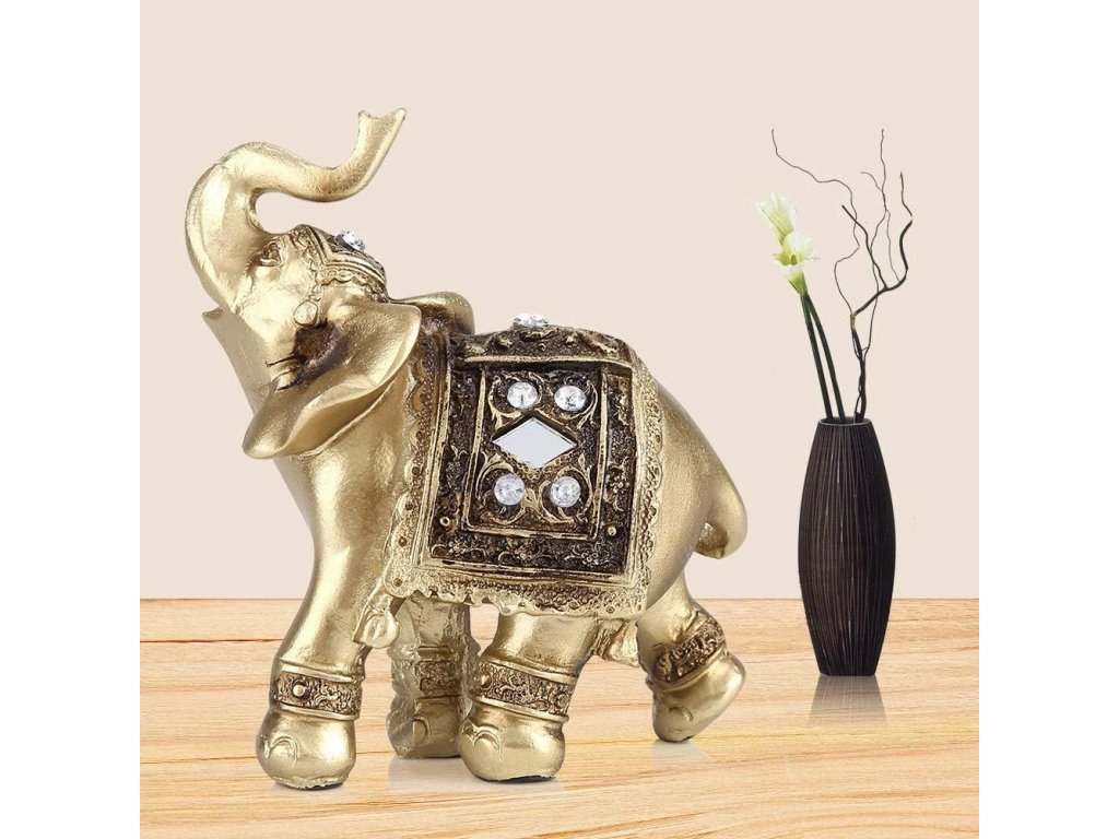 Zlatý polyresinový slon, elegantní soška slona s obráceným chobotem, ozdoba Feng Shui