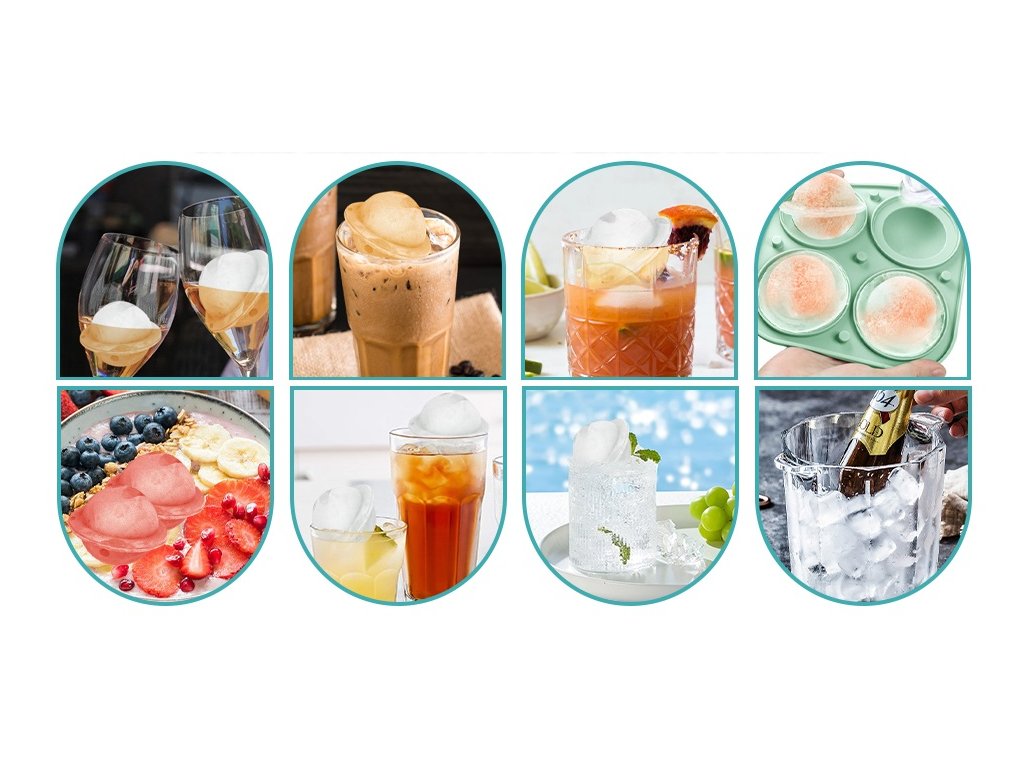Každá silikonová forma na led vytvoří 4 velké kostky ledu o průměru 5 cm, ideální pro výrobu luxusních nápojů.