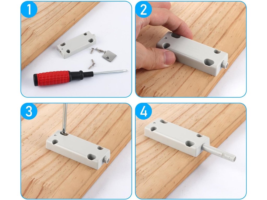 Lze nainstalovat pomocí šroubováku, nejprve označte instalační polohu, pak pevně zašroubujte základnu, připevněte zátku a šrouby na jiné dveře ve stejné výšce jako dveře skříně, nakonec otestujte účinek a upravte vzdálenost.