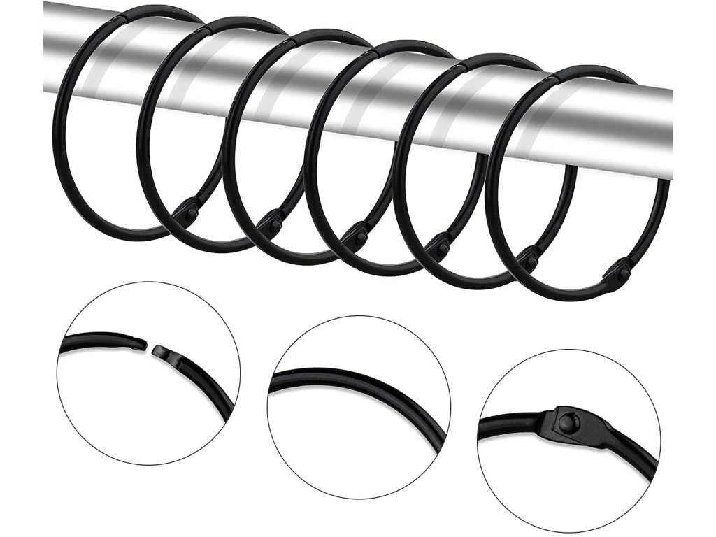 Velké uzavírací kroužky k zavěšení závěsů na záclonovou tyč.