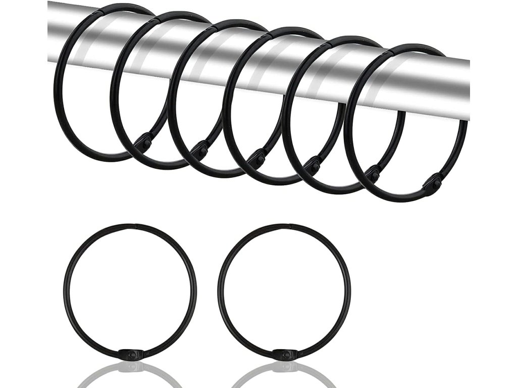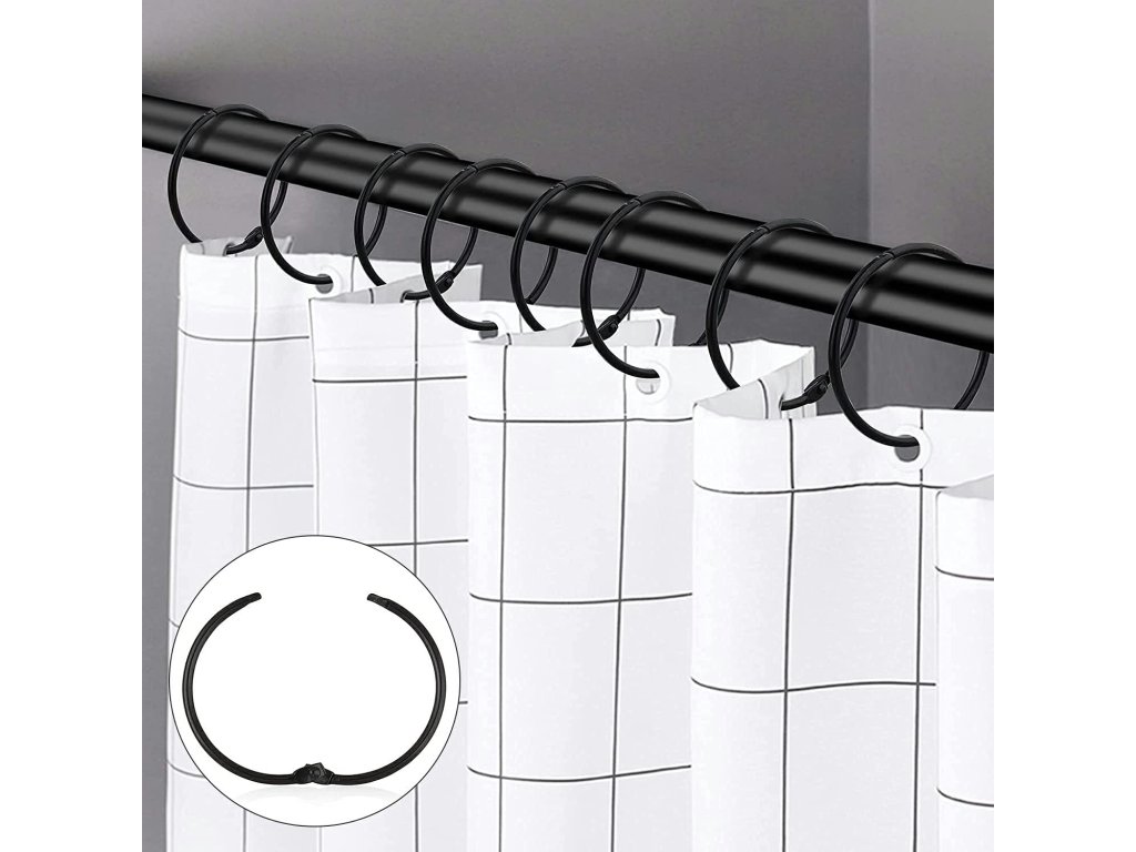 22ks kovové závěsové kroužky 50 mm, černé, na závěsy, sprchový závěs